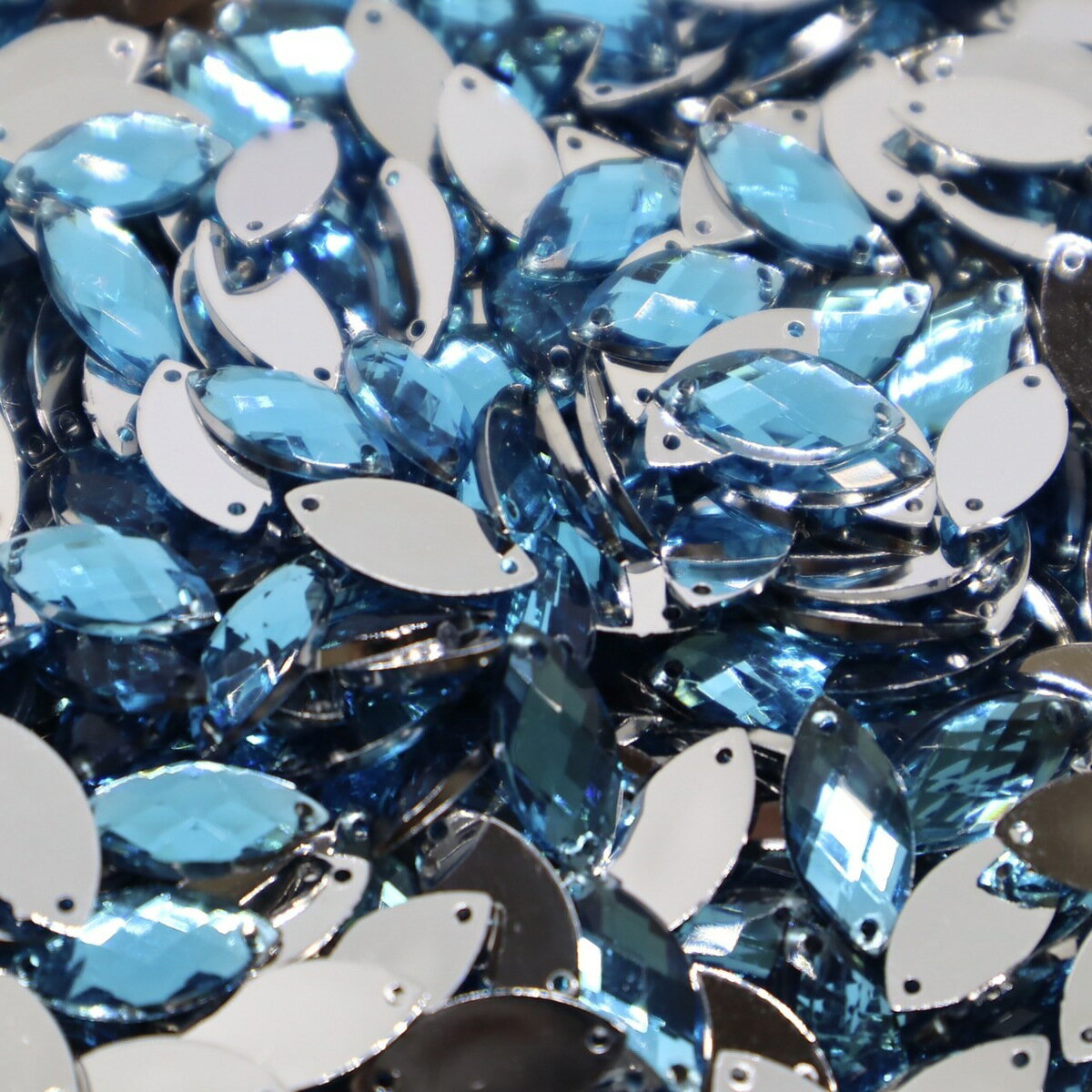 アクリルビジュー 樹脂ビジュー ソーオン ソーオンビジュー ソーオンストーン 衣装パーツ 【格子レモン型 アクアマリン 7×15ミリ 50粒】新体操 レオタード製作に☆
