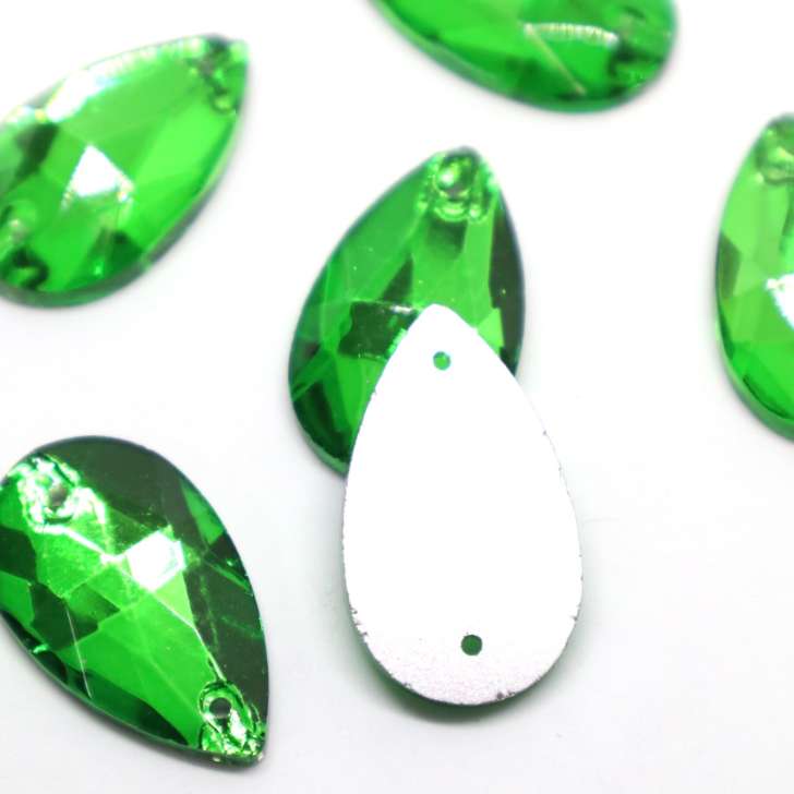 ガラスビジュー ガラスストーン 高輝度ビジュー ソーオン ソーオンビジュー 雫型大 ノーマルエメラルド 衣装パーツ 17×28ミリ 6粒