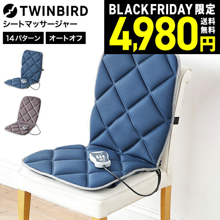 商品詳細 シートマッサージャー SPEC ●製品寸法:[WxDxH]約470×50×900mm ●製品質量:約1.3kg(付属品含む) ●電源:専用ACアダプター(EM-CH28型) ●消費電力:8W ●定格時間:10分 ●タイマー:10分(オートオフ) ●電源スイッチ:切/弱/強 ●マッサージ部位選択スイッチ:もも、腰、背中 ●ACアダプターコード:長さ約2.5m ●医療機器認証番号:220AGBZX00097000 ●付属品:ACアダプター ●JANコード:4975058254612 4975058255619 TWINBIRD(ツインバード)について 新潟県燕市に本社を構える家電メーカー。1951年メッキ加工業として創業し、1984年から本格的に家電事業を始めました。職人たちの“ものづくりの文化”が息づく燕三条。製品の細部まで、深く、そして丁寧にこだわり抜いた技術で、より良いものづくりを目指しています。 “心にささるものだけを” 人々を心から感動させ、本当に暮らしを豊かにできる必要な機能だけを搭載した、シンプルで使いやすいリーズナブルな家電が特徴のブランドです。全自動コーヒーメーカーや、ミラーガラスのオーブントースター、コードレスクリーナーなどコンパクトでお洒落な調理器具や家電が人気。どんなインテリアにも溶け込む見た目で、安心できる品質だけでなく、洗練されたスタイリッシュなデザインも魅力です。様々な暮らしの新しいニーズに応える幅広いラインナップで、高機能・高品質の商品をお届けします。 毎日使えるキッチン家電や生活家電は、ご自宅用だけでなく、新生活を始めるご家族・ご友人への新生活応援家電プレゼントとして、引っ越し祝い・結婚祝いのギフトにもおすすめです。