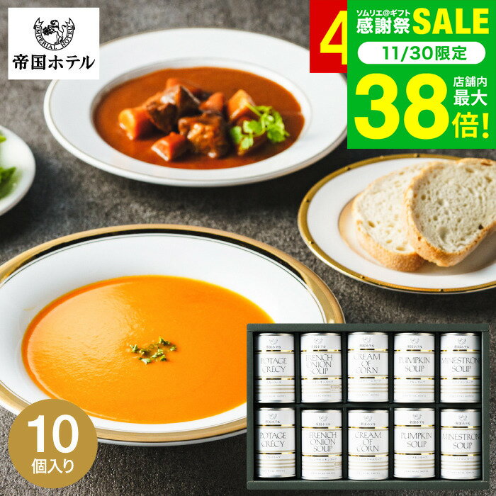 お歳暮 冬ギフト 内祝い グルメ 帝国ホテル スープ缶詰セット 10缶 TS-50 / 缶詰 高級 出産内祝い 結婚内祝い お返し 詰め合わせ ギフトセット 写真入り メッセージカード 出産祝い 結婚祝い 新築祝い 贈答品 gws 食べ物 送料無料 ギフト
