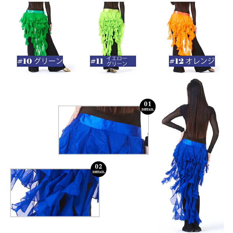 【05】ベリーダンス ヒップスカーフヒップスカート フリル アクセサリー 小物 スカーフ ダンス衣装 コスプレ衣装 ステージ衣装 レッスン着 レッスンウェア 仮装 余興 アラビアン オリエンタル 華やか 黒 白 赤 ピンク 青 紫 黄色 緑 オレンジ 全13色!