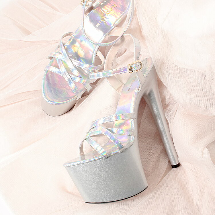 17cmヒール サンダル ハイヒール 厚底 アンクルストラップ ピンヒール コンテストサンダル エナメル 1811