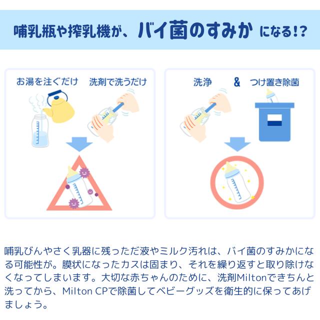 ミルトン 錠剤 CP 36錠Milton 専用 CP 錠剤 36錠 24時間 洗浄 消毒 除菌 衛生 哺乳瓶 搾乳器 食器 玩具 おもちゃ 赤ちゃん ママ パパ ベビー 妊娠 妊婦 マタニティ用品 ベビー用品 ミルトンセット セット 病院 保育園 託児所 クリニック 正規品1,240円ミルトン 錠剤 CP 60錠Milton 専用 CP 錠剤 60錠 24時間 洗浄 消毒 除菌 衛生 哺乳瓶 搾乳器 食器 玩具 おもちゃ 赤ちゃん ママ パパ ベビー 妊娠 妊婦 マタニティ用品 ベビー用品 ミルトンセット セット 病院 保育園 託児所 クリニック 正規品1,840円 名称ミルトン 専用容器商品説明半透明の本体には水位線が付いており、調製が容易です。フタには2つの計量部(50mLと25mL)があり、簡単に調製できます。付属の落し蓋はベビーグッズの浮き上がりを防ぎ、トングは底に沈んだ小物や哺乳びんも取り出しやすく、フタは光やホコリなどの汚染からベビーグッズを守ります。付属品・タンク本体・落し蓋・トング・フタ使用方法1. ベビーグッズを洗浄する。2. ミルトン専用容器に所定の水量を入れ、ミルトン(液体タイプ)を適量加える。(4Lの水に液体タイプ50mL)錠剤タイプの場合は、4Lの水に2錠入れる。3. ベビーグッズを容器内に入れ、落し蓋で浮き上がりを防ぐ。4. 所定の時間消毒した後(1時間以上)、トングを使用して取り出す。5. 取り出したベビーグッズは水ですすがず、そのまま使用可能。匂いが気になる場合は水ですすいでください。注意事項・使用前に必ず取扱説明書をお読みください。・消毒液の調製時には、正確な水量とミルトンの量を守ってください。・消毒液は1日1回新しく作り直してください。・子どもの手の届かない場所に保管してください。・火のそばに置かないでください。・冷蔵庫に入れないでください。・電子レンジ消毒には使用しないでください。製造販売元杏林製薬株式会社 〒100-0004東京都千代田区大手町一丁目3番7号日本経済新聞社東京本社ビルメーカー名杏林製薬株式会社生産国日本区分ベビー用品広告文責株式会社 玄愛堂0568-50-2735 【検索関連キーワード】ミルトン ミルトン専用容器 専用容器 ベビー用品 育児用品 ベビー 赤ちゃん 新生児 乳幼児 キッズ 洗浄 洗浄容器 哺乳瓶 哺乳瓶洗浄 洗浄 殺菌 おしゃぶり 消毒用品 消毒 除菌専用 除菌専用容器 除菌 衛生用品 衛生管理 衛生ケース ベビー衛生 簡単 手軽 安心 便利 杏林製薬 離乳食用食器 milton Milton baby Baby disinfection Disinfection ワンダフルデー 5と0がつく日 お買い物マラソン 楽天スーパーSAIL 楽天スーパーDEAL 勝ったら倍キャンペーン 早割 エントリー ポイントアップ 楽天 買い回り まとめ買い 贈り物 プレゼント 母の日 父の日 誕生日 クリスマス 人気 売れ筋 口コミ レビュー セール 10代 20代 30代 40代 50代 60代 70代 80代 人気商品 送料無料
