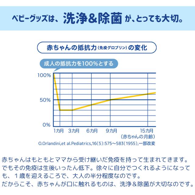 名称ミルトン チャイルドプルーフ(Milton CP)商品説明ミルトンCPは、哺乳びんや乳首などの除菌を目的とした錠剤タイプの消毒剤です。小さなお子さまの誤飲事故を防止するため、手では切れにくいチャイルドプルーフシートを採用しています。水4Lに対して2錠を溶かすだけで溶液が調製でき、1時間以上浸すことで除菌が完了します。調製した溶液は24時間有効で、何度でも使用可能です。内容量60錠全成分【成分】1錠(1.0g)中・ジクロルイソシアヌル酸ナトリウム:500mg【添加物】炭酸水素ナトリウム、アジピン酸、乾燥炭酸ナトリウム主な効能・哺乳瓶の除菌・乳首の除菌・器具類の除菌使用方法1. 洗浄する:使用後の哺乳びんや乳首などをよく洗います。2. 溶液を調製する:水4Lに対して2錠の割合で溶かし、溶液を作ります。3. 浸ける:洗浄した哺乳びんや乳首などを完全に溶液に沈め、1時間以上浸します。4. 使用する:取り出して溶液をよく振り切れば、そのまま使用できます。※:残液が気になる場合は、きれいな水ですすいでください。注意事項・子どもの手の届くところに保管しないでください。・飲み込んだ場合は、すぐに水、生卵、ミルク等を飲み、医師に相談してください。・目に入った場合は、こすらずにすぐに水またはぬるま湯で十分に洗い流し、症状が重い場合は眼科医に相談してください。・溶液との接触により、手荒れ、発疹・発赤、かゆみ等の症状が現れた場合は使用を中止し、医師または薬剤師に相談してください。・定められた使用方法を厳守してください。・金属製の容器や金属製品、メラミン食器等には使用しないでください。・調製後、溶液が変色した場合、その水での調製を避けてください。・直射日光の当たらない湿気の少ない涼しい所に保管してください。・シートから取り出して他の容器に入れ替えないでください。・衣類等につくと脱色、変色することがありますので注意してください。・製品によっては印刷面(文字、絵)、材質などが変色・変質することがあります。製造販売元杏林製薬株式会社 〒100-0004東京都千代田区大手町一丁目3番7号日本経済新聞社東京本社ビルメーカー名杏林製薬株式会社生産国日本区分ベビー用品/消毒用品広告文責株式会社 玄愛堂0568-50-2735 【検索関連キーワード】ミルトンチャイルドプルーフ チャイルドプルーフ ミルトンCP ミルトンcp ミルトン 60錠 ベビー用品 育児用品 ベビー 赤ちゃん 新生児 乳幼児 キッズ 洗浄 除菌 殺菌 哺乳瓶洗浄 哺乳瓶除菌 おしゃぶり 消毒用品 消毒 杏林製薬 器具類洗浄 錠剤タイプ 安心 簡単 便利 簡単 手軽 衛生管理 衛生用品 ベビー衛生 離乳食用食器 milton Milton miltonCP MiltonCP miltoncp Miltoncp baby Baby disinfection Disinfection ワンダフルデー 5と0がつく日 お買い物マラソン 楽天スーパーSAIL 楽天スーパーDEAL 勝ったら倍キャンペーン 早割 エントリー ポイントアップ 楽天 買い回り まとめ買い 贈り物 プレゼント 母の日 父の日 誕生日 クリスマス 人気 売れ筋 口コミ レビュー セール 10代 20代 30代 40代 50代 60代 70代 80代 人気商品 送料無料 ミルトン 容器 P型 4LMilton ミルトン 専用 容器 本体 洗浄 消毒 除菌 衛生 哺乳瓶 搾乳器 食器 玩具 おもちゃ 24時間 つけ置き 赤ちゃん ママ パパ ベビー 妊娠 妊婦 マタニティ用品 ベビー用品 ミルトンセット セット 病院 保育園 託児所 クリニック 正規品2,650円ミルトン 錠剤 CP 36錠Milton 専用 CP 錠剤 36錠 24時間 洗浄 消毒 除菌 衛生 哺乳瓶 搾乳器 食器 玩具 おもちゃ 赤ちゃん ママ パパ ベビー 妊娠 妊婦 マタニティ用品 ベビー用品 ミルトンセット セット 病院 保育園 託児所 クリニック 正規品1,260円 メーカー希望小売価格はメーカーサイトに基づいて掲載しています