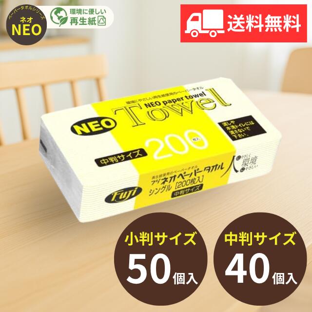 フジ ペーパータオル ネオ 200枚×50個/40個 業務用尚美堂 フジナップ 小判 中判 使い捨て 再生紙 環境 エコ eco 衛生用品 キッチン 洗面所 タオルペーパー 紙タオル ペーパー 手拭き 節水 清潔 家庭用 施設 オフィス 学校 病院 店舗 清掃 掃除 まとめ買い 送料無料