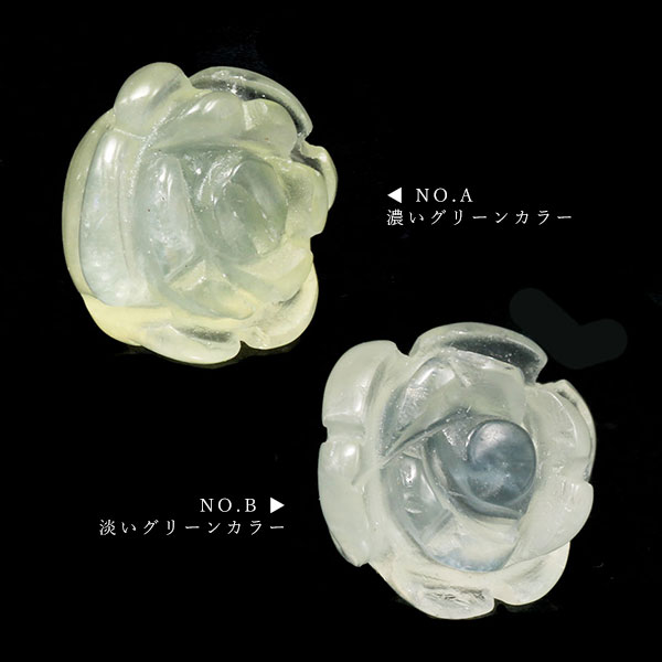 瑞々しいライムグリーンな色彩を持つプレナイト。 清涼感のある優しい色合いは見ているだけで癒されそうな雰囲気を醸し出しています。 今回はごくわずかにですが濃い色彩のものと淡い色彩の2色を厳選。 どちらも透明度は抜群でうるうる艶やかな表情がとっても魅力的です。 まあるい花びらが愛らしいバラモチーフのカットが施されていてコロンとしたシルエットが飴玉のようでもありとても美しく煌めきます。 優しげな輝きはきっと心に安らぎを与えてくれるはず。 ■スペック 宝石名:プレナイト サイズ:約8.0×8.0×6.0mm 重量:2.13ct カット:フラワー 硬度:6-6.5 ※色彩の濃いor薄いでお選びください。 ※ルースによりカットや重さに個体差があります。 ■備考: ※加工をご要望の際は、お気軽にお問い合わせ下さい。