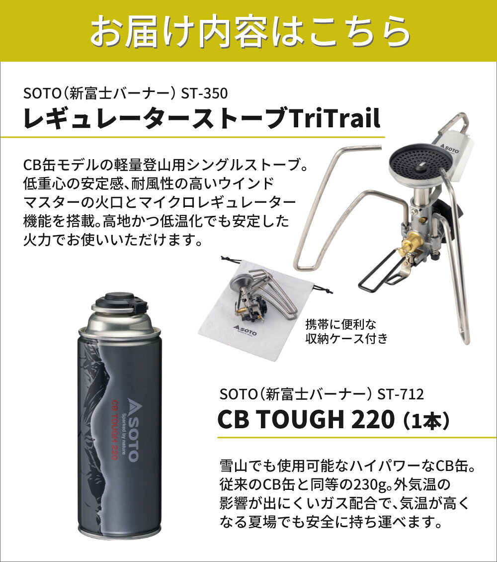 【カセットガス付き】 SOTO ソト レギュレーターストーブ TriTrail ST-350 新富士バーナー シングルバーナー & CB TOUGH 220 ×1本(ラッピング不可)(.QL)