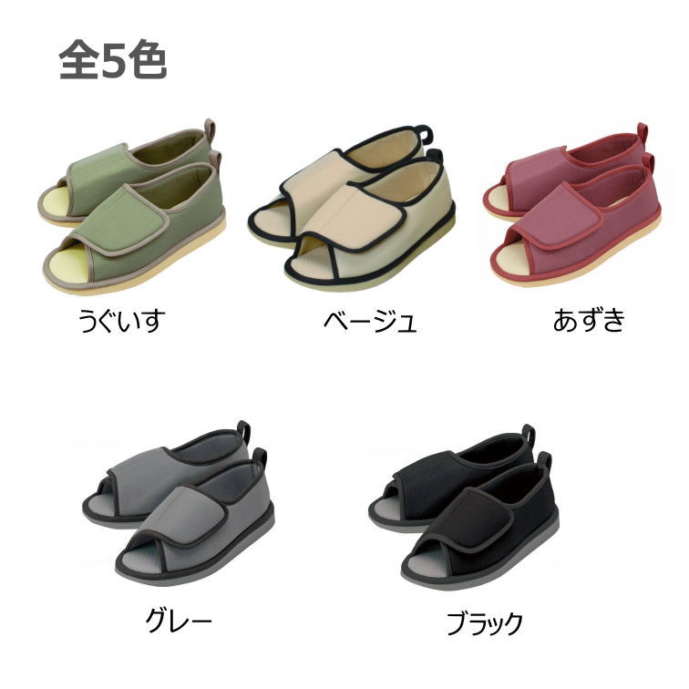 【男女兼用・S-3L】転倒予防シューズ つま先なし 室内用 両足販売 S/M/L/LL/3L グレー/ブラック/あずき/ベージュ/うぐいす 軽量 かかと付き スリッパ すべり止め付き(竹虎)入院用 シューズ マジックテープ仕様 入院 スリッパ つまずき 防止 介護シューズ つま先無し