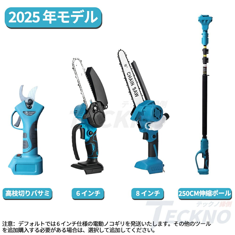 商品情報【基本情報】チェーソースピード(無負荷時):10m/sマシンの長さ:110cm~200cm/110cm~250cm 伸縮式チェーンソーのサイズ:6 インチ、8 インチ切削径:30cmバッテリー:21V-7500mAh(注文にて 1 個付属)、21V-15000mAh、21V-22500mAhチェーンの緩みはドライバで調整できます。※ 単独で製品を購入するのは伸縮延長ポールを含まないので、お客様自身で追加購入する必要があります!※ 本商品にはチェーンが1本だけ付属しており、商品出荷時にチェーンが本体に取り付けられました。【2025 年新商品!1 台 4 役】この商品は、高枝用チェーンソー / 高枝切りばさみで、電動チェーンソーまたは電動ばさみを伸縮式延長ポールと組み合わせたものです。ミニチェーンソーとして使えて、ポールチェーンソーとしても使えます。伸縮ポールは1.1m〜2.5mまで無段階調節でき、最高は約4.3m(身長1.8mの作業者がポールを持ち上げている場合)まで届けます。それにヘッド部分は180°調節可能で、作業中に状況に合わせて切断角度を調整できます。不安定なはしこに頼る必要がなくなって、安全性が大幅に向上し、困難な高枝切り作業も簡単にします。【高効率ブラシレスモーター技術】本製品は高度なブラシレスモーター技術を採用しており、モーターの磁気損失と摩擦損失を低減し、高効率かつ低騒音の作業条件を継続的かつ安定して維持できるだけでなく、電力消耗を約20%以上減らすことができます。同時に、ブラシレスモーターは動作中に火花を発生せず、安全で信頼性が高く、ブラシ付きモーターの5倍以上の長くお使いいただくことができます。電動ノコギリのソーチェーンと電動ハサミのブレードは高強度で耐摩耗性に優れたSK5鋼を焼入れ鍛造しており、切断や剪定作業が楽に行え、従来品に比べてより長くお使いいただくことができます。【安全・安心の機能設計】ご使用の際はバッテリーを装着後、はじめに電源スイッチを長押ししてください。電動チェンソーおよび延長ポールはロックスイッチを押し続けると動作を開始します。電動ハサミはトリガーを2回引くと動作を開始する設計になっています。ハンドルとソーチェーンにはそれぞれ保護カバーを設け、誤操作によるけがを防ぎます。また、一部の女性のニーズに応えるため、より軽量なカーボン素材を製品設計に採用し、付属のショルダーストラップと併用することで、切断や剪定作業時の疲労を軽減します。【軽量&優れた操作性】重量がわずか2.26kgのコードレス高枝チェーンソーは女性にも高齢者にもラクに使用できます。人間工学に基づいて設計は、指や手首への圧力を軽減でき、長時間使用しても疲れにくいです。厳格な安全対策を採用して、安全ロックとスイッチボタンを同時に押すだけでチェンソーが運転できます。誤操作を防止できて、ユーザーの安全を確保します。【使用範囲が広い】電気のこぎりの適用範囲が広く、果樹園の側枝切断、家庭用薪、竹切り、苗木切り、都市緑化、DIY木製品プロジェクトなどに広く応用されている。高い枝を切断したり、花園の木を切断したりするなど、家庭で使用するのにも適しています。★バッテリー付き 高枝チェーンソー 高枝切りバサミ 充電式 8インチ 1台4役セット 110-250cm伸縮可能 切段物径300mm 電動 チェーンソー 高枝切りチェーンソー 剪定ばさみ 枝切り 軽量 家庭用 【PSE認証 2年保証】 バッテリー付き 一台2役 、高枝切り 鉢植え 果樹剪定 、ブラシレスモーター搭載、安全ロック設計年寄りとお子様の誤操作を防ぐ 【2025 年新商品!1 台 4 役】この商品は、高枝用チェーンソー / 高枝切りばさみで、電動チェーンソーまたは電動ばさみを伸縮式延長ポールと組み合わせたものです。ミニチェーンソーとして使えて、ポールチェーンソーとしても使えます。伸縮ポールは1.1m〜2.5mまで無段階調節でき、最高は約4.3m(身長1.8mの作業者がポールを持ち上げている場合)まで届けます。それにヘッド部分は180°調節可能で、作業中に状況に合わせて切断角度を調整できます。不安定なはしこに頼る必要がなくなって、安全性が大幅に向上し、困難な高枝切り作業も簡単にします。チェーソースピード(無負荷時):10m/sマシンの長さ:110cm~200cm/110cm~250cm 伸縮式チェーンソーのサイズ:6 インチ、8 インチ切削径:30cmバッテリー:21V-7500mAh(注文にて 1 個付属)、21V-15000mAh、21V-22500mAhチェーンの緩みはドライバで調整できます。【高効率ブラシレスモーター技術】本製品は高度なブラシレスモーター技術を採用しており、モーターの磁気損失と摩擦損失を低減し、高効率かつ低騒音の作業条件を継続的かつ安定して維持できるだけでなく、電力消耗を約20%以上減らすことができます。同時に、ブラシレスモーターは動作中に火花を発生せず、安全で信頼性が高く、ブラシ付きモーターの5倍以上の長くお使いいただくことができます。電動ノコギリのソーチェーンと電動ハサミのブレードは高強度で耐摩耗性に優れたSK5鋼を焼入れ鍛造しており、切断や剪定作業が楽に行え、従