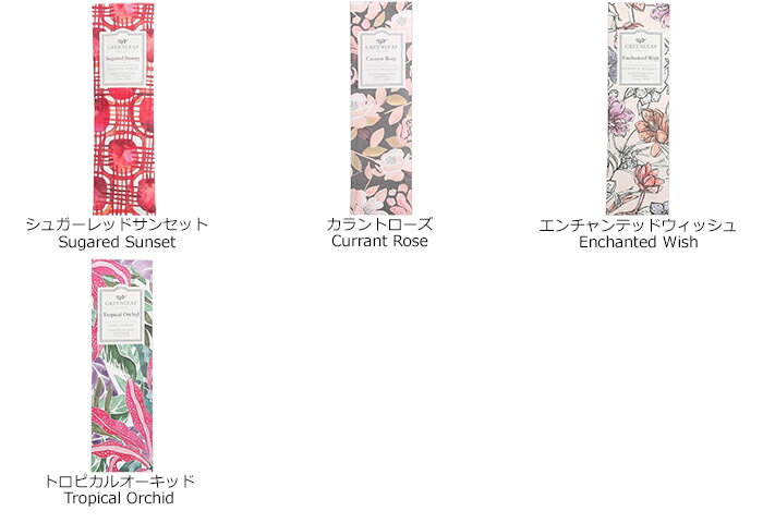 ■パッケージや容器について■ 旧タイプと、リニューアル後の新タイプが混在した状態での入荷の為、何れかをご選択頂く事は出来かねます。 アメリカで誕生した本格派ホームフレグランスメーカー 『GREEN LEAF』 フレッシュセンツは手軽にどこでも楽しめる新しいスタイルのフレグランスです。 自然な草花の香りや爽やかなフルーツの香りなど、全てオリジナルのオイルを使用し、 長期間香りを楽しめます。 香りの持続は約2ヶ月ほどです。 (ご使用環境により異なります。) また、それぞれの香りをイメージしたパッケージも人気です。 ハンドバッグやクローゼットの中、 ランドリーバッグや玄関、シューズボックス等に置いてお楽しみ下さい。 商品詳細 ■フレグランス名■ シュガーレットサンセット カラントローズ エンチャンテッドウィッシュ トロピカルオーキッド ■サイズ■ 縦約20cm×横約6.0cm 内容量:約90ml ※スタッフ採寸・計量のため誤差が生じる場合があります事予めご了承ください。 ■成 分■ バーミキュライト、香料 ■原産国■ アメリカ 品質とご注意点 ・海外からの直輸入品です。 ・乳幼児の手の届かないところにおいてください。 ・紙パッケージ及び内容物がニスや塗料の塗装面、プラスティックや革製品などに直接触れますと製品が変色したり破損の恐れがあります。 ・絶対に食べないでください。 ・紙製の為、商品到着時やご使用方法によっては中身がこぼれ出ることがあります。 ・お使いのパソコンモニターにより色合いが異なる場合が御座います。 ・紙製品の為、封が剥がれ易く、折れ、シワになっている等の品質にバラつきがある場合がございます場合がございますが、全てメーカーの検品を通過した良品ですので機能を果たす限り、返品交換は出来かねます。 ・当店ではラッピング等のサービスが御座いません。 以上、予めご理解・ご了承の上、ご購入願い申し上げます。 ※注意※ メール便は、お届けに最大7日以上かかる恐れがあり、またご住所がご不明の場合は自動的に当店へ返送となります。また、配送中やポスト投函後の紛失・破損の補償が御座いませんので宅配便をおススメ致します。 『GREEN LEAF -グリーンリーフ-』 その他商品はこちら★サイズ 縦約20cm×横約6.0cm ※スタッフ採寸のため若干の誤差が生じる場合がございます。 内容量 90ml 成 分 バーミキュライト、香料 原産国 アメリカ