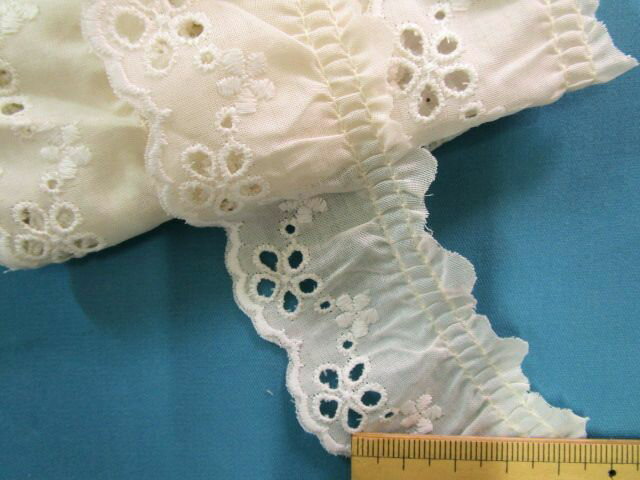 * 綿 レース* 小さなお リボン* フリル* 2m ちょっと幅が長いタイプ 白・ オフ白 2色より〜( ギャザー/ コットン/ リメイク/ 手芸 レース/)