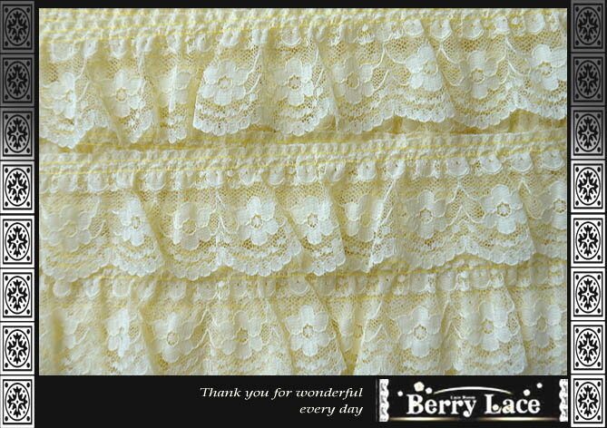 ◆ ITEM SPEC ◆ 販売単位 1パック=10m巻き ::素材:: ナイロン ::Color:: パステルイエロー ::Size:: 約 4.1cm ::Memo: ※フリル加工有りのフリルタイプです。当店で人気のレースです。 ←柔らかい・●・・・・・・・・硬い→