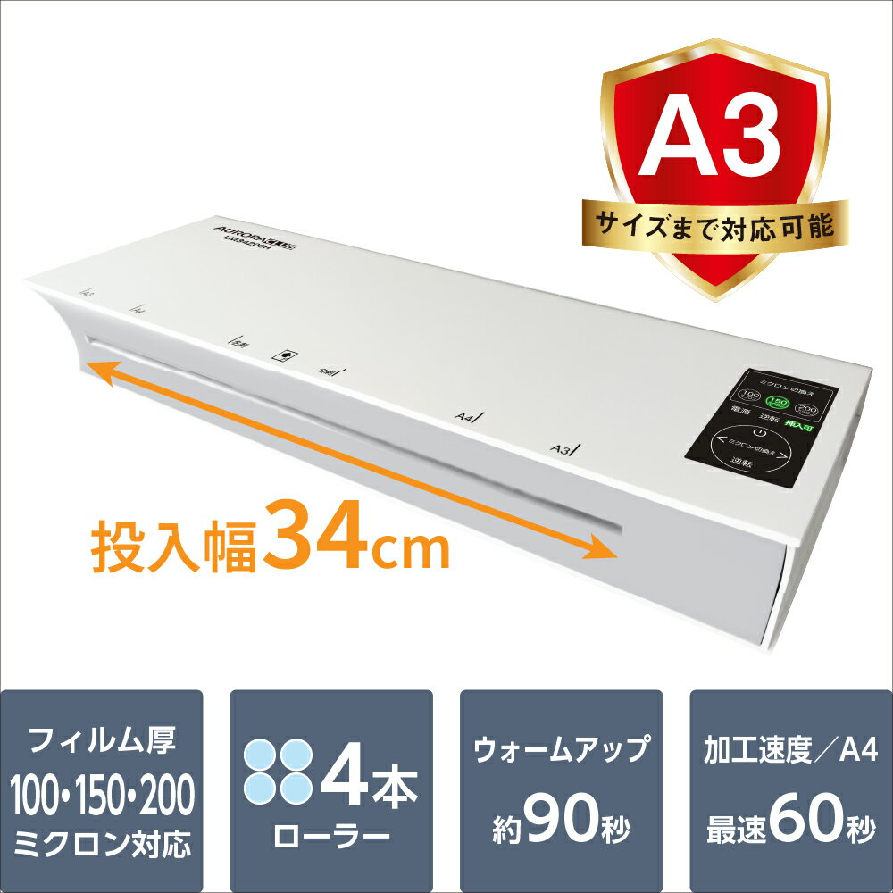 ラミネーター ラミネートフィルム 200μmまで 4本ローラー AURORA オーロラジャパン A3 ラミネーター 高速ラミネーター ラミネーター ラミネート 生活用品 オフィス用品・ステーショナリー(文房具) 事務機器 LM34200H