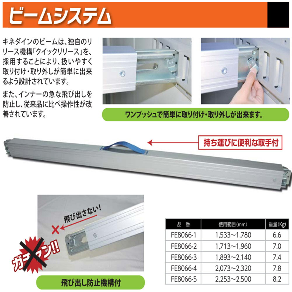 ■ラッシングバー ビームシステム キネダイン トラック用 キネダインのビームは、独自のリリース機構「クイックリリース」を採用することにより、 扱いやすく取り付け・取り外しが簡単に出来るよう設計されています。 また、インナーの急な飛び出しを防止し、従来品に比べ操作性、安全性が改善されています。 ●ネーム入れ対応可 10本以上まとめてお買い上げいただきますと、無料でネーム入れ対応可能です。 ご希望の方は、備考欄に『ネーム入れ希望』の旨と希望のお名前をご記入くださいませ。 ※お名前は1注文の商品に対して1つのみお受けできます。各商品に個別のお名前を打つことはできませんのでご了承ください。 ※当商品は本州地域のみ送料無料となっております。北海道、四国、九州、沖縄、及び離島地域へのお届けは別途送料が発生いたします。 金額につきましては、メーカーに確認後、ご連絡させていただきます。ご了承ください。 ※個人宅等へのお届けの場合、別途送料が発生しますことあらかじめご了承ください。↓高品質輸送製品販売中!↓