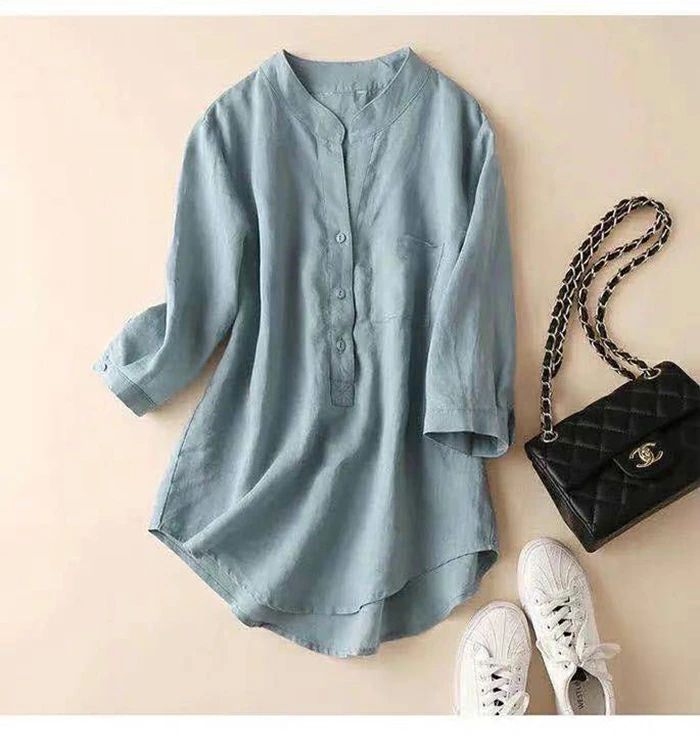 チュニック ブラウス シャツ レディース 五分袖 ブラウス 綿麻風 春 夏 レディース コットン シャツ チュニック 大きいサイズ ゆったり 体型カバー ロングシャツ トップス 薄手 ナチュラル 柔らか カジュアル 女性 おしゃれ ファッション 無地 送料無料