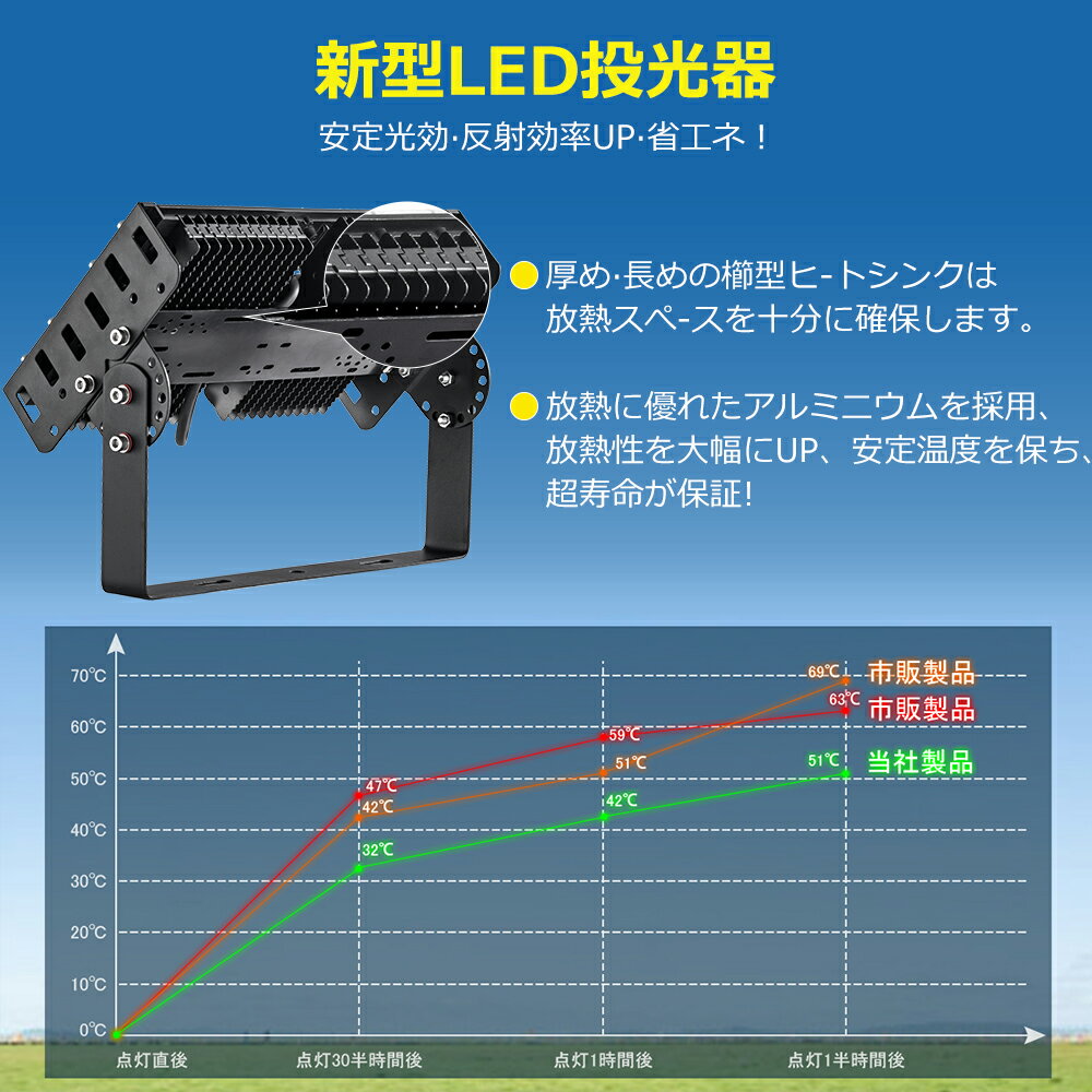 SPEC 仕様 商品名:薄型LED投光器 消費電力:600W 全光束:120000lm 200lm/w サイズ:約580*250*140mm 重さ:約13.5kg 色温度:電球色3000K/昼白色5000K/昼光色6000K 平均演色評価数:Ra80以上 動作電圧:AC85V〜265V 照射角度:120度 回転角度:180度 防水等級:IP65 定格寿命:50000時間 電源:高機能 MEANWELL電源内蔵採用 材質:防錆性鋳造アルミ + 強化ガラス 付属品:5m接続コード、ACプラグ 特徴 ●超高輝度、効率抜群 超高輝度LED投光器、定格光束120000lmに達します。強化ガラスを採用して、高輝度を生成できます、高光透過率を実現させました。照射効果、透光性と耐震性も向上します、反射效率アップ! ●IP65防水.防塵性能 防水規格IP65取得(IP65とは粉塵が内部に侵入せず、いかなる方向からの直接噴流によっての有害な影響を受けない。)コーキングを強化することで、IP65相当の防塵.防水性能を実現!雨の当たる屋外や粉塵の多い環境でもご使用いただけます! ●電源装置内蔵 電源装置が本体に内蔵されているため、交換時、初期不良への対応、取付工事が簡単等、メンテナンスや取扱いが容易なので、既存設備との代替えに最適。 外付け電源は、新規取付には適していますが、既存施設への導入には大がかりな工事が必要となります。 ●高い放熱性能 ボディをフィン構造にすることで放熱性に優れ、熱ダレによる故障を防ぎます。クリンプフィン型ヒートシンク(ひね板式フィン)構造を採用したLED照明器具の重量において、放熱冷却器が占める割合は高く、これを軽量化することにより大幅軽量化を図ることが出来ます。 ●用途 1.店舗看板、広告看板、店舗壁面などのライトアップ照明! 2.駐車場、倉庫、工場、学校、体育館、グランド、野球場、事務所、展示場、デパートなどの照明用に! 3.街灯、公園、町内防犯、樹木、風景ランプとしての照明に。 4.国家エコー照明プロジェクト、建築照明として。 ご注意 ※調光調色機能はございません。スイッチなども使用できません。リモコンつきません。 ※取付・取外しは必ず電源を切った状態で行なってください。 ※周囲温度が60℃を超える場所や腐蝕性環境では使用しないでください。 ※点灯中・消灯直後は、照明器具に触れないでください。やけどの原因になることがあります。 検索キーワード( 商品説明ではありません ) LED投光器 LED 投光器 投光機 ワークライト LEDチップ LED投光機 LED照明 野外灯 作業灯 集魚灯 看板灯 屋内 屋外 照明 お店 飲食店 倉庫 工場 整備 設備 工事 建築 現場 造船 造園 農業 林業 農家 酪農 畜産 牧場 船舶 港 ピッキング リフト フォークリフト 荷下ろし 荷積み 積み下ろし 作業 明るい 照らす トラック トラクター ビニールハウス 野菜 果物 フルール 青果 育てる 収穫 越冬 オールシーズン 春 夏 秋 冬 荷台 防犯灯 庭 玄関 ガレージ 車庫 駐車場 駐車場灯 アウトドア キャンプ 車中泊 グランピング ベランダ バルコニー BBQ バーベキュー スポーツ 校庭 運動場 グラウンド 陸上 トラック ジョギング マラソン 走る 広場 部活 野球 サッカー テニス ラグビー 大会 夜 夜間 練習 トレーニング ナイター 多用途 省エネ 防水 10W 20W 30W 50W 75W 100W 150W 200W 300W 400W 誕生日 父の日ギフト 父の日 プレゼント 母の日ギフト 母の日 プレゼント 実用的 母の日ギフト 花以外 母の日 敬老の日 子供の日 こどもの日 勤労感謝の日 クリスマス クリスマスプレゼント バレンタイン バレンタインギフト ホワイトデー ホワイトデーギフト 内祝 内祝い お祝い返し ウェディングギフト ブライダルギフト 引き出物 引出物 入園 入学 卒園 卒業 就職 快気 開店 二次会 披露宴 お祝い 御祝 結婚式 結婚祝い 出産祝い 初節句 七五三 成人式 昇進 新築祝い 引っ越し祝い 引越し祝い 開店祝い 退職祝い 快気祝い 還暦祝い 古稀祝い 喜寿祝い 傘寿祝い 米寿祝い 卒寿祝い 白寿祝い 長寿祝い 金婚式 銀婚式 ダイヤモンド婚式 結婚記念日 ギフト ギフトセット 詰め合わせ 贈答品 お返し お礼 御礼 お見舞い お見舞御礼 謝礼 お餞別 引越しご挨拶 記念日 定年退職記念品 ゴルフコンペ コンペ景品 ビンゴ 大会 忘年会 一発芸 出し物 新年会 ゲーム 景品 賞品 粗品 お中元 御中元 お歳暮 御歳暮 年賀 残暑見舞い 年始挨拶 正月 宴会 お盆 ハロウィーン ハロウィン 大晦日 人気 口コミ お買い物マラソン ご愛顧感謝デー ワンダフルデー weimall メルモント MERMONT mermont (商品説明ではありません。)他の規格選択はこちらへ LED投光器50W LED投光器100W LED投光器150W LED投光器200W LED投光器250W SPEC 仕様 商品名:薄型LED投光器 消費電力:600W 全光束:120000lm 200lm/w サイズ:約580*250*140mm 重さ:約13.5kg 色温度:電球色3000K/昼白色5000K/昼光色6000K 平均演色評価数:Ra80以上 動作電圧:AC85V~265V 照射角度:120度 回転角度:180度 防水等級:IP65 定格寿命:50000時間 電源:高機能 MEANWELL電源内蔵採用 材質:防錆性鋳造アルミ + 強化ガラス 付属品:5m接続コード、ACプラグ 特徴 ●超高輝度、効率抜群 超高輝度LED投光器、定格光束120000lmに達します。強化ガラスを採用して、高輝度を生成できます、高光透過