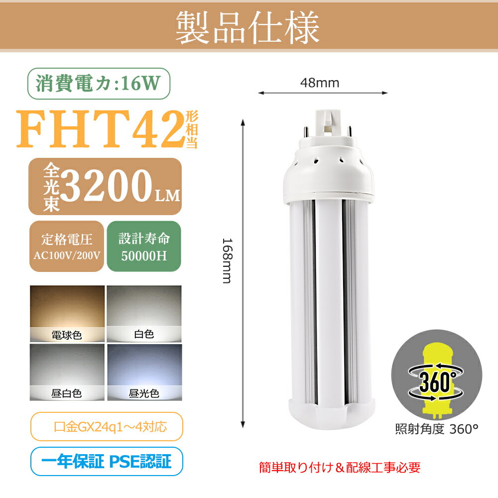 【直結配線工事必要】新型FHT42EXN型 ツインコンパクトLED蛍光灯 FHT42EXL FHT42EXW FHT42EXN FHT42EXD FHT42EX-L FHT42EX-W FHT42EX-N FHT42EX-D 照射角度360° 口金GX24q-2/3/4/5共通 電球色 白色 昼白色 昼光色 FHT42EXのLED化 ツイン3蛍光灯