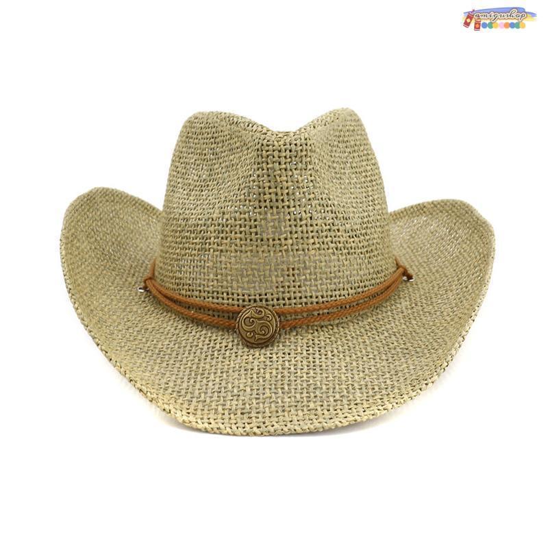 麦わら帽子 テンガロンハット ストローハット メンズ コンチョ付き レディース つば広 あごひも おしゃれ 中折れ カウボーイ 日焼け防止 農作業