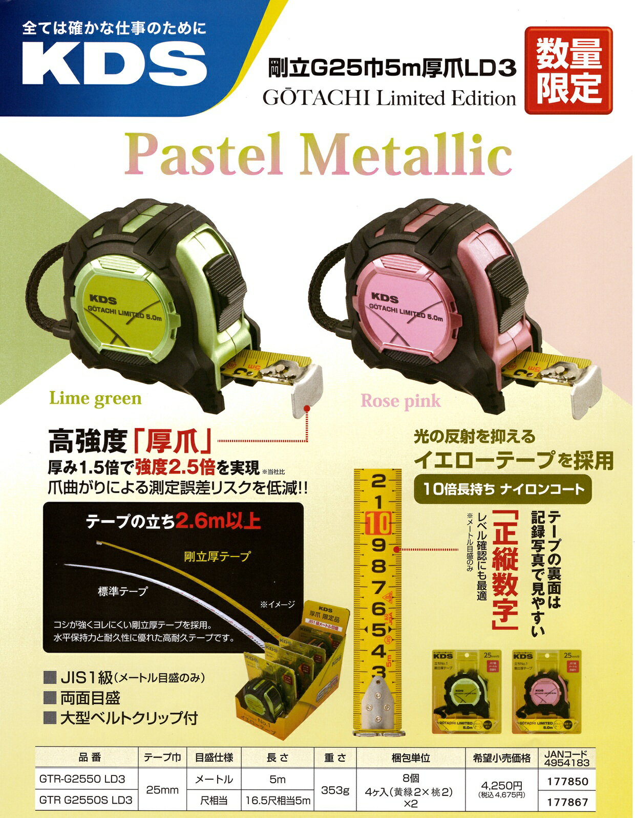■通常テープより測定距離が伸びる剛性力1.5倍のストロングテープ採用しています。(当社比)■弾性樹脂で全身をガードしています。■落下時の衝撃から爪を守るフックガードバンパー■0点補正移動爪■ショックアブソーバー付【用途】・長さ測定用。【仕様】・テープ長さ(m): 5・テープ幅(mm): 25・水平保持(m): 2.6・ヨンゴーゴーピッチ表示: あり・色: 黒・両面目盛・大型ベルトクリップ付・ストラップ付※本商品が対象となるクーポンは、その期間終了後、同一内容でのクーポンが継続発行される場合がございます。