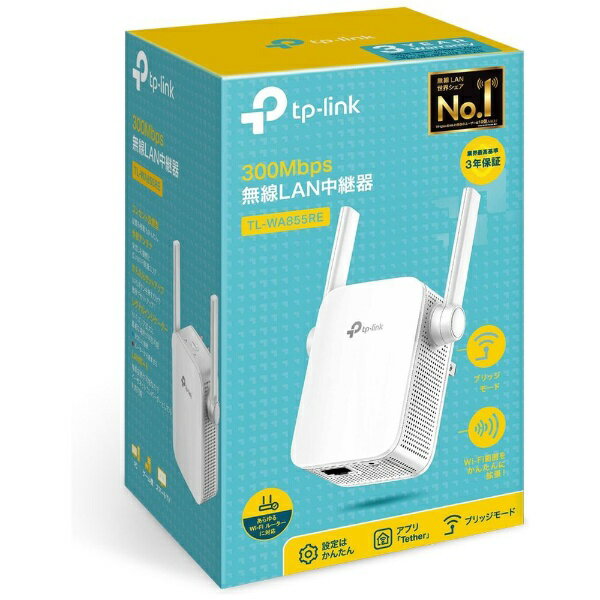 Wi-Fiの範囲をかんたんに 拡張「300Mbps 無線LAN中継器」■小さくても強力TL-WA855REは汎用性の高い11n規格に対応しており300Mbpsの速度を誇るのでほぼすべてのデバイスにとって最適なソリューションとなり得ます。■期待を裏切らない力強さ2本の外部アンテナとMIMOテクノロジーによって、TL-WA855REその他の中継器とは一線と画した存在となります。■設定はかんたん中継器の初期設定は、ルーターのWPSボタンとTL-WA855REのREボタンを押すだけです。これで Wi-Fiの中継・拡張が開始されます。■かんたんに管理とコントロールアプリ「Tether」は直感的でわかりやすいアプリです。かんたんに中継器の接続状態などのモニタリングや一部の機能の利用が可能です。 【TLWA855RE】※本商品が対象となるクーポンは、その期間終了後、同一内容でのクーポンが継続発行される場合がございます。