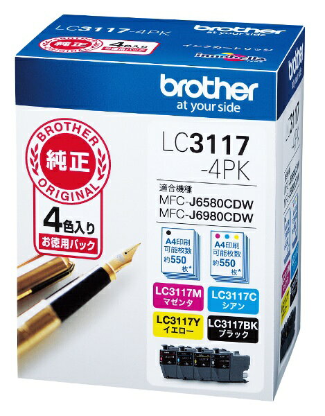 brother|ブラザー LC3117-4PK 【ブラザー純正】インクカートリッジ4色パック LC3117-4PK 対応型番:MFC-J6983CDW、MFC-J6583CDW、MFC-J5630CDW 他 4色パック[LC31174PK]【rb_pcp】