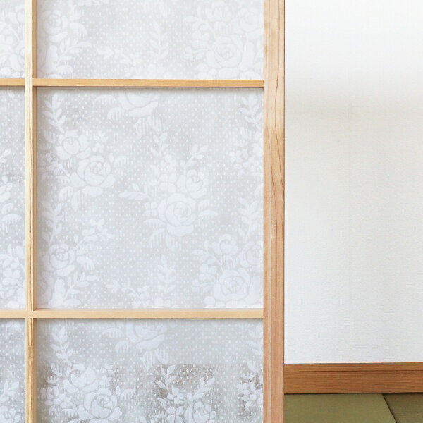 カーテンのような感覚で楽しめるバラのレース模様の障子紙です。ポリエステル素材をベースに、模様は和紙で漉き込みました。光を多く取り入れ明るい解放感。障子のりで貼ることができます。・新聞紙複数紙の平均値77Kpa(当社調べ)に対して約4倍の強さ。・障子貼りにとても便利な仮止めシール付き・この障子紙1本で巾94cm、丈180cmの腰板なし障子が2枚分貼れます。■サイズ:紙巾94cm×紙長さ3.6m■製法:機械すき■材料:[ベース部分]ポリエステル 100%、[柄部分]パルプ・レーヨン・パール粉、けいこう剤配合