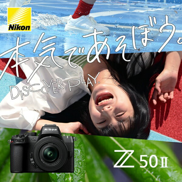 多彩な画作りを楽しめる機能と上位機種同等の優れた機能・性能を兼ね備えた、カメラを初めて使うユーザーでも使いやすく、憧れの表現や自分らしい画作りを簡単に実現できるモデルです。■豊富なピクチャーコントロールZ50IIには画像の雰囲気を変えるフィルター機能、[ピクチャーコントロール]が充実。カメラには「クリエイティブピクチャーコントロール」など31種類のカラープリセットをあらかじめ搭載し、リアルタイムに画像や映像に反映できます。これらは自分好みにカスタマイズでき、カスタマイズした設定は最大9つのカスタムピクチャーコントロールとして保存し、いつでもすぐにアクセス可能です。■多彩なイメージングレシピニコンのクラウドサービス[Nikon Imaging Cloud]の[イメージングレシピ]にアクセスすると、ニコンや著名なクリエイターが作成したレシピ(特製のピクチャーコントロール)を無料で保存できます。カメラに送信・登録することであこがれの色で撮影できるようになり、表現の幅が広がります。■カメラデビューに安心な性能Z50IIなら簡単にイメージ通りの撮影が可能です。カメラの性能を左右する画像処理エンジンにはプロ向けの機種と同じEXPEED 7を搭載。カメラ任せでイメージ通りの撮影を可能にする、高い性能を実現しています。■カメラならではの楽しさファインダーを覗く。自由なアングルで撮る。フラッシュを使う。カメラならではの撮影体験で、表現の楽しさが加速します。■クリアーな見えで被写体に集中できる高輝度EVFZ50IIの高輝度EVFは、明るい場所でもファインダー像のディテールをはっきりと確認でき、快適でスムーズな撮影が可能。EVFは画像モニターと同じ設定を表示するため、目を離さずに簡単に設定を調整できます。■Vlogやライブ配信デビューにぴったりな動画機能カメラの前に出した商品にピントを合わせやすく、レビュー動画やVlogの撮影がスムーズに行える「商品レビューモード」※を新たに搭載。また、パソコンやスマホに接続するだけでZ50IIをWEBカメラとして使えるUSBストリーミング(UVC/UAC) に対応しており、クリアーなライブ映像を気軽に配信できます。さらに、「動画セルフタイマー」を活用すると一人で撮影する際に余裕ができ、カットしなければならない撮影前の不要な動作をなくして、投稿時の手間を省けます。※動画モードでのみ有効です。商品レビュー撮影に適した状態に一括設定されるため、フォーカスモードやAFエリアモードなどの設定は変更できません。■動画撮影をレベルアップする多彩な機能4K UHD 60pやフルHD 120pで撮影することで、大迫力のスローモーション映像を実現できます。また、ニーズに合わせて階調モードはSDR、HLG、N-Log※から選択可能。2種類のゼブラ表示やウェーブフォームモニターで露出を確認し、撮影中の映像品質をしっかりと管理できます。※H.265 10bit(MOV)で撮影する場合に選択可能。■付属レンズNIKKOR Z DX 16-50mm f/3.5-6.3 VRNIKKOR Zレンズの高性能を小型・軽量ボディーに凝縮し、高画質を手軽に楽しめるDXフォーマット標準ズームレンズNIKKOR Z DX 50-250mm f/4.5-6.3 VR望遠領域の広いズーム範囲と高い手ブレ補正(VR)効果で、幅広いシーンに対応するDXフォーマット望遠ズームレンズ 【rb_remp】