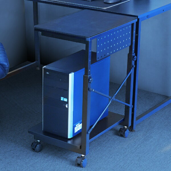 7段階の高さ調節ができるキャスター付きワゴン既存のデスクをL字デスク化できる天板付き。デスク周りでの使用に限らず、キッチンやリビングでの日常使用でも活躍間違いなし。■キャスターで自由自在に移動可能底部には4つの樹脂製キャスターを搭載。2つのストッパーが誤った動きを防止する安心設計。■7段階の高さ調節上部の天板は、高さ55cm〜85cmの間で7段階の変更が可能。■合計80kgの耐荷重耐荷重は各天板40kgで、安定感抜群。パソコン周辺機器に限らず、キッチンアクセサリーや家電の設置用途にもお使いいただけます。■市販のピッチ幅30mm用アタッチメントや、マグネットも使用可能ピッチ幅30mm用であれば、一部のPYZONE製品や市販のアタッチメントを使用可能。スチール製のためマグネットも使用でき、アレンジしやすい。(※こちらの製品にはアタッチメントやマグネット類は付属しておりませんので、別途お買い求めください。)[アタッチメント対応]FABWPPHBK デスクパネル360GADESIHBK デスクEXラックCLMEBASWH 後付けできるゲーミングデスクパネルW ホワイトCLMEBASBK 後付けできるゲーミングデスクパネルW ブラックMPRPCBHBK 雑誌も置けるクランプ式「スチール有孔ボード」■滑り止め付きの天板用マット付属天板全面を覆う専用マットを付属。裏面は滑り止め加工がされているため、ズレなく安心。