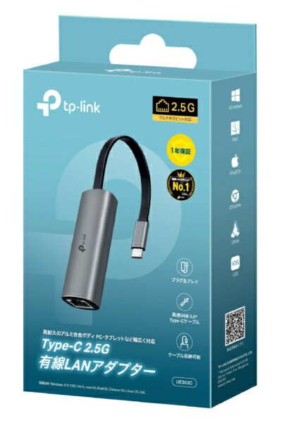 USB Type-C 2.5ギガビット有線LANアダプター■高速・安定のデータ転送USB Type-Cを搭載したパソコンやタブレット等をマルチギガビット有線LANに接続することができます。2.5Gbps対応のNASと組み合わせての高速ダウンロード、快適な動画視聴やゲーム対戦が可能になります。■幅広い互換性Windows 11/10/8.1/8/7・MAC OS・iPadOS・Chrome OS・Linux OS・iOSに対応しています。■プラグ&プレイドライバー不要のプラグ&プレイでご利用いただけます。■頑丈なアルミニウム製耐久性と放熱性に優れた筐体です。■折りたたみ式デザインコンパクトで持ち運びに便利です。 ※Windows 7/8/8.1とMAC OS 10.6-10.8ではTP-LinkのHPからドライバーをダウンロードする必要があります。※LinuxのドライバーはTP-Linkでは提供していません。