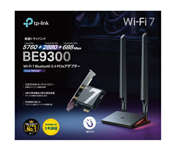 TP-Link|ティーピーリンク Archer TBE550E 〔PCI-Expressアダプター〕5760Mbps+2880Mbps+688Mbps (Windows11対応) [Wi-Fi 7(be)]【newlife_campaign_h】