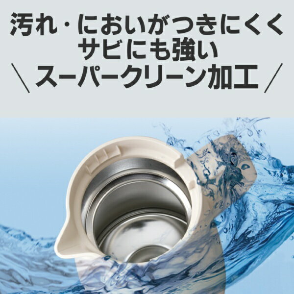 ■インテリアに調和するスタイリッシュなフォルムとカラー真空断熱構造で保温・保冷力が高く、飲み物を最適の温度に保つステンレスポット。どの空間にも合うカラーラインアップで、場所や時間を選ばずお好きな飲み物を楽しめます。■ワンタッチ着脱ふた簡単に素早く着脱できるワンタッチふたを採用。手指の大きさにかかわらず開閉レバーがつまみやすいよう、すっきりとしたデザインに仕上げました。■注ぎやすいプッシュレバーレバーをプッシュして傾けると中の飲み物が出る構造です。とっ手を持ちながら押すことで、スムーズに注いでいただけます。■広口約7.5cmで大きな氷も入りやすい■真空断熱でしっかり保温・保冷軽くて丈夫なステンレス製の真空二重構造により、高い断熱効果を発揮し、温かい飲み物は温かいまま、冷たい飲み物は冷たいまま、温度を長時間保ちます。例えば、朝入れたコーヒーやお茶はお昼になっても飲みごろ温度をキープ。電気を使わず省エネで、ダイニングやリビングでゆっくりと飲み物を楽しめます。■汚れやにおいがつきにくい「スーパークリーン加工」毎日使うものとして清潔性とお手入れのしやすさにこだわりました。ポットの内面には、なめらかで光沢のあるスーパークリーン加工を施しました。汚れやにおいがつきにくく、さっと洗うだけで、いつも清潔にお使いいただけます。■広口でお手入れしやすい手を入れやすく、内側までしっかり洗えます。■本体丸洗いOK!■分解パーツが少なく、組み立てもかんたん