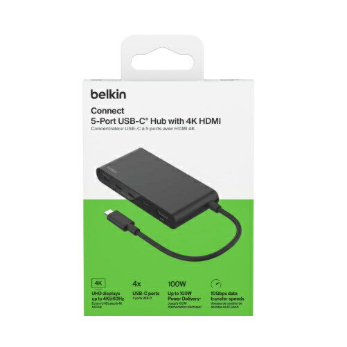 BELKIN|ベルキン 映像変換アダプタ [USB-C オス→メス HDMI /USB-Cx3+USB-Cメス給電 /USB Power Delivery対応 /100W] 4K対応(Chrome/Mac/Windows対応) AVC021fqBK