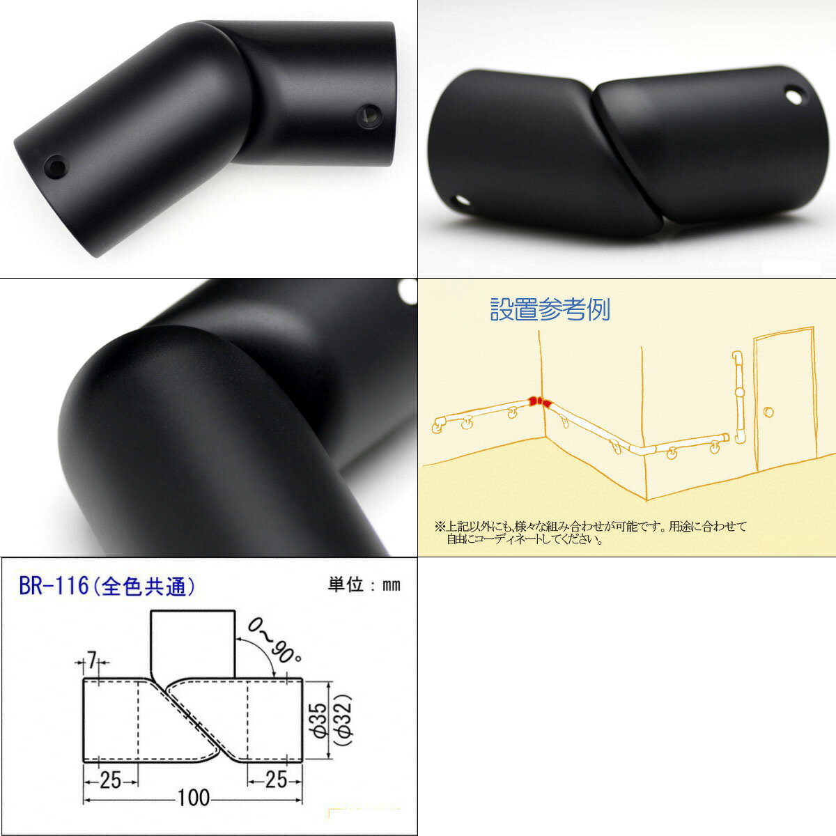 ブランド名:シロクマサイズ:35φ材質:亜鉛合金カラー/仕上:ブラック付属ビス:A1丸皿 3.5×16×D6出荷日目安:通常、手配開始より1-2営業日目(※メーカー様欠品時は除く)。【※ご注文の際には必ず「全ての画像」「説明テキスト」「商品名(特にサイズ)」の確認をお願い致します。】 シロクマ製、室内用手すりブラケットのジョイント部品です。 自在ジョイントで連続手すりの施工が簡単になりました。階段などで2本の手すりを角度をつけて連結する場合に使います。棒を受ける部分が回転しますので、ビス穴を自由な方向に移動させてすっきりとした収まりにすることができます。角度調整も0〜90度までと広く、あらゆるタイプの階段に対応します。取り付けはシンプルにビス固定式。木製の丸棒をジョイントにしっかりと差込み、付属木ネジで固定してください。 ※サイズは適応する丸棒の太さを示しています。丸棒に合ったサイズをお選びください。 ※図面は共通図面の為、35φタイプ・32φタイプ、両方の寸法が記載されています。お間違いにならないようご注意ください。 ※自在ジョイントの端部から100mm以内に受部品などのブラケットを取り付けてください(資料参照)。無理な加重が自在ジョイントの近くでかかった場合、自在ジョイントが破損する可能性があり、大変危険です。尚、付属木ネジは下穴加工をお願いします。※楽天市場店では、別サイトbidoorpal.comに準拠した商品画像やテキストを使用しています。その為、商品によっては、同一ページ内に他サイズや他仕様の情報が混在している場合がありますので、ご購入の際は、商品のサイズ・仕様等をよくご確認ください。※表記している納期は通常時の目安であり、納期を保証するものではありません。