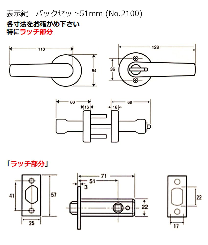 ブランド名:TAIKO(タイコー)サイズ:バックセット51mm材質:亜鉛ダイカスト仕様/カラー:表示錠/AM(アンバー)バックセット:51mm対応扉厚:30mm-41mm【※ご注文の際には必ず「全ての画像」「説明テキスト」「商品名(特にサイズ)」の確認をお願い致します。】 オプション部品(別売)のセーフティエスカッションNo.2130を使用する事により、円筒錠(ドアノブ)からの取り替えに最適となるレバーハンドル、「ターボレバーNo.2100」シリーズです。 【特長】 ・力の弱い方でも操作が簡単なレバーハンドルです。 ・ラッチはチューブラーなので、取り付けが簡単です。 ・勝手は左右兼用です。 ・別売部品のNo.2130 セーフティエスカッションをご使用頂くと、円筒錠を手軽にレバーハンドル錠に取替えできます。 【ご注意】 ※ご注文確定前に仕様やバックセットに間違いがないか必ず最終確認をお願い致します。 ※バックセットとは扉の端から握り玉の中心までの寸法のことを指します。このページで購入可能な商品は「ターボレバーハンドル No.2100 AM(アンバー) 表示錠 バックセット51mm @5491円(税抜) 【納期:1-3日】」です。※楽天市場店では、別サイトbidoorpal.comに準拠した商品画像やテキストを使用しています。その為、商品によっては、同一ページ内に他サイズや他仕様の情報が混在している場合がありますので、ご購入の際は、商品のサイズ・仕様等をよくご確認ください。※表記している納期は通常時の目安であり、納期を保証するものではありません。