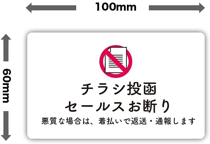 シンプルデザイン チラシ投函・セールス お断りしますステッカー 四角(タテ60mm×ヨコ100mm) 防犯対策 防水耐水 壁にやさしい再剥離シール
