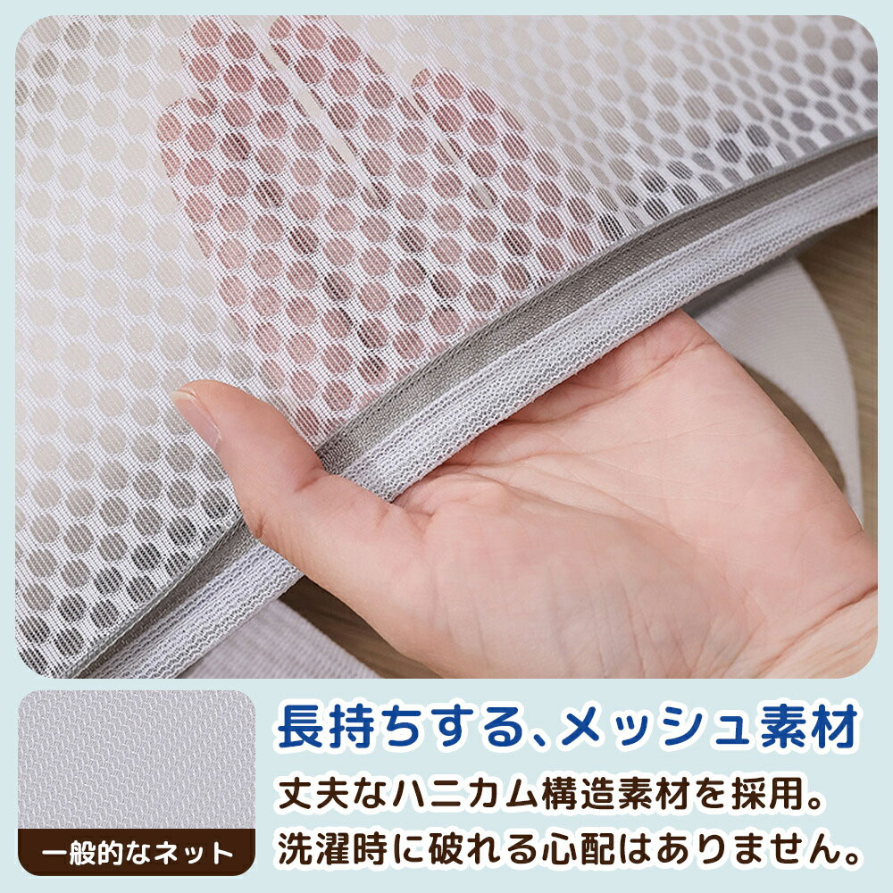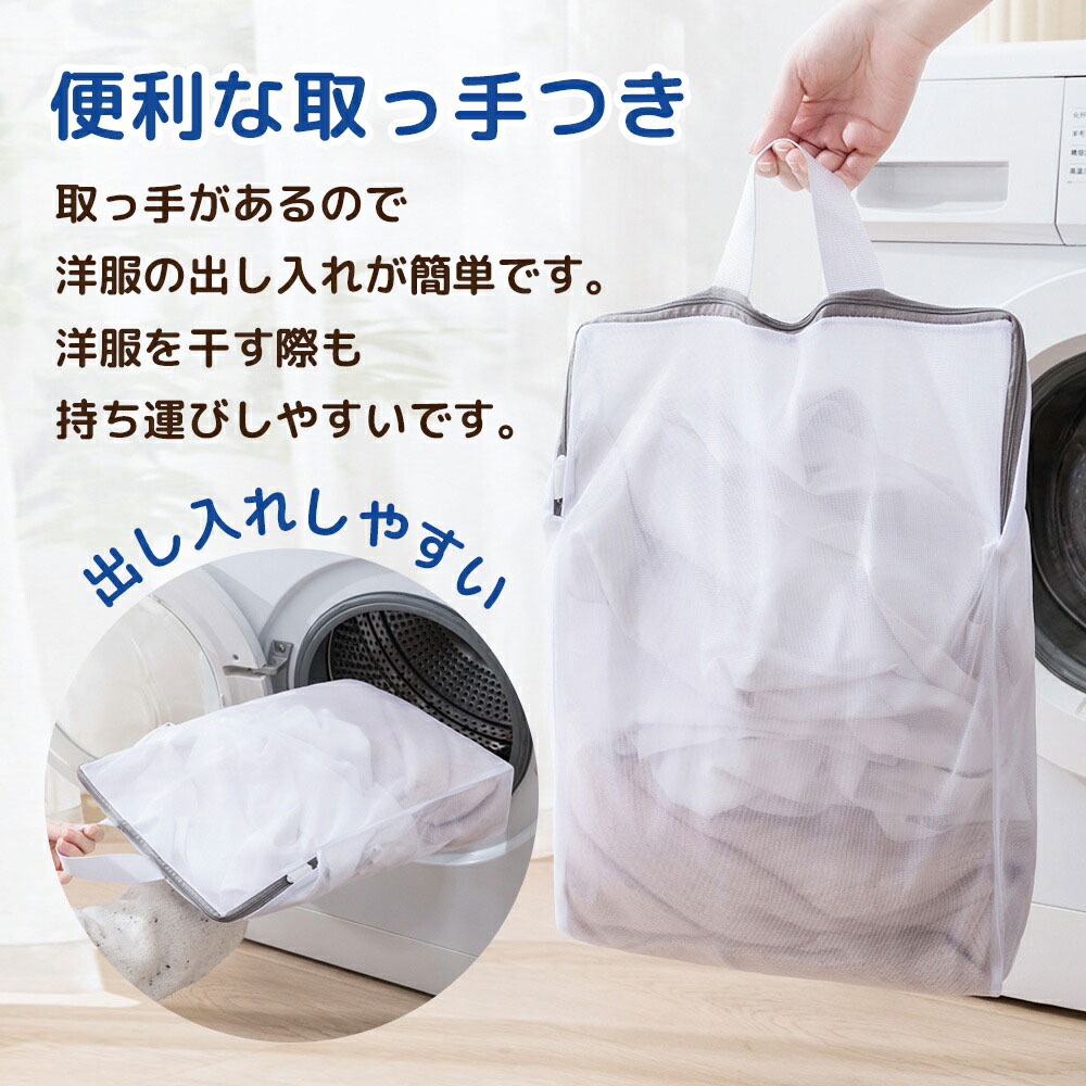 商品詳細 《便利な取っ手つき》 取っ手があるので洋服の出し入れが簡単です。洋服を干す際も持ち運びしやすいです。 《長持ちする、メッシュ素材》 丈夫なハニカム構造素材を採用。洗濯時に破れる心配はありません。 《安全面に配慮したファスナー》 さびに強いステンレス素材。安心して洗濯できます。 洗濯中にファスナーが勝手に開かないよう、つまみをおさえるカバーつき。 内容量洗濯ネット4枚〔S、M、L、XL 各1〕 サイズSサイズ:20cm × 30cm × 8cm Mサイズ:30cm × 40cm × 8cm Lサイズ:40cm × 50cm × 10cm XLサイズ:50cm × 60cm × 10cm 素材ポリエステル 販売者ラ・フローレ 和歌山県日高郡美浜町和田2102-1