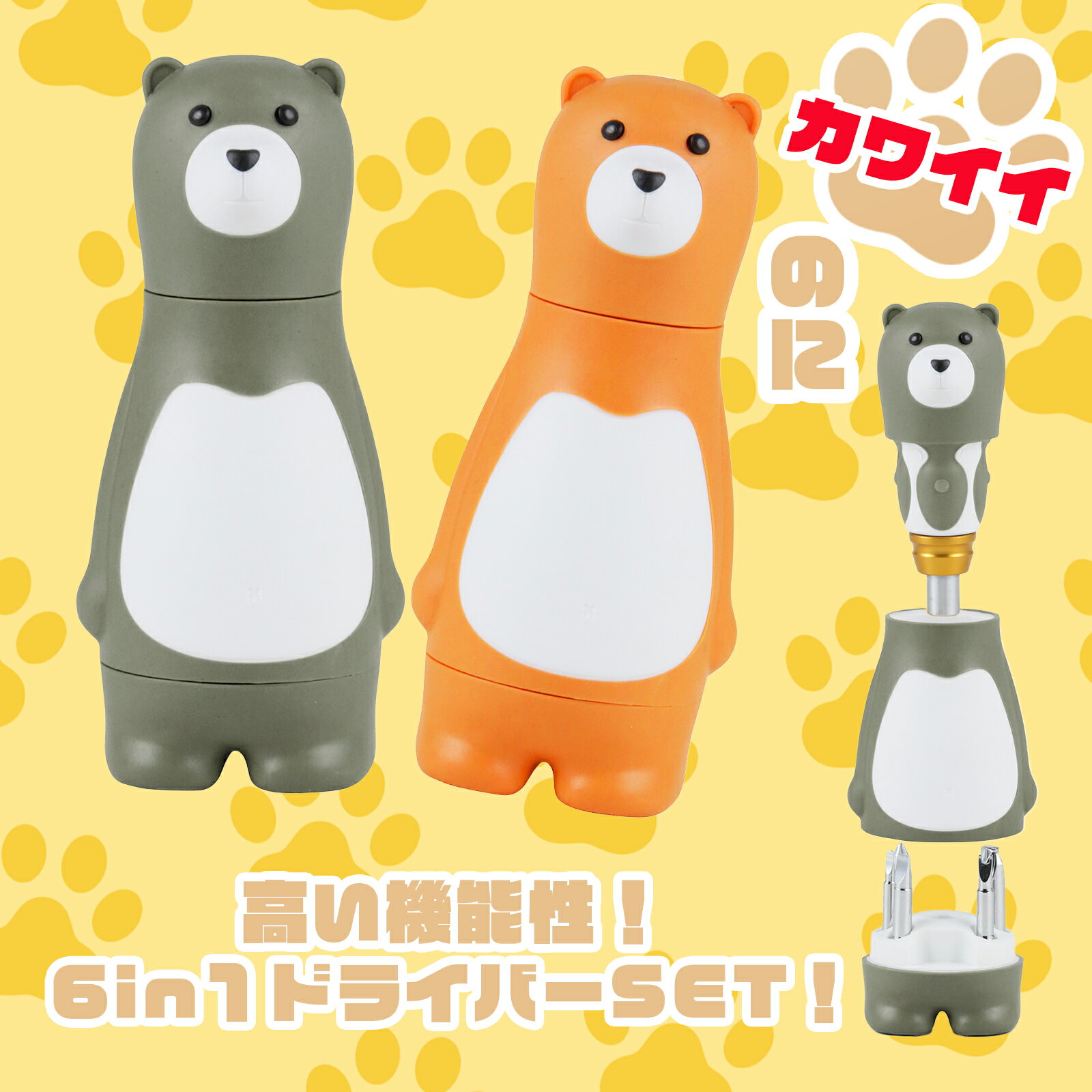 ドライバーセット 工具セット 6in1 アニマルドライバーセット プラス マイナス Y型 六角 三角 U型 特殊 ドライバー ジャックドライバー 収納 コンパクト 持ち運び 可愛い クマ グレー ブラウン