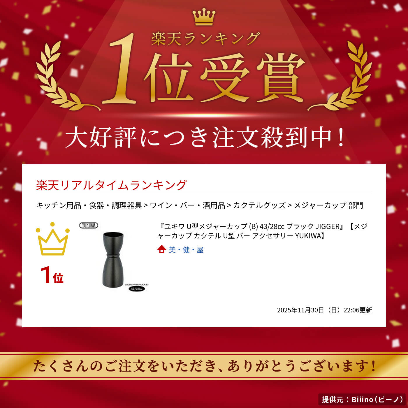 『ユキワ U型メジャーカップ (B) 43/28cc ブラック JIGGER』【メジャーカップ カクテル U型 バー アクセサリー YUKIWA】