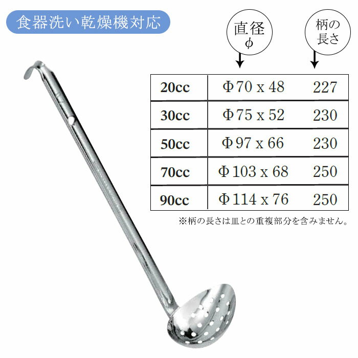 商品名横口スキンマー 18-8ステンレス (スポット溶接+ろう付け) 商品説明新潟県燕市で製造の業務用横口スキンマー、穴あきレードル。 18-8ステンレスでサビに強く末永くお使い頂けるプロ仕様です。 (スポット溶接+ろう付け)仕様。 サイズ(直径×柄の長さ)(20cc)φ70×48×227mm (30cc)φ75×52×230mm (50cc)φ97×66×230mm (70cc)φ103×68×250mm (90cc)φ114×76×250mm 種類20cc、30cc、50cc、70cc、90cc お選びください。 材質18-8ステンレス 仕様食器洗い乾燥機対応 生産国日本(燕市) ブランドMARUTAMA マルタマ メーカー玉虎堂製作所 ぎょっこどう