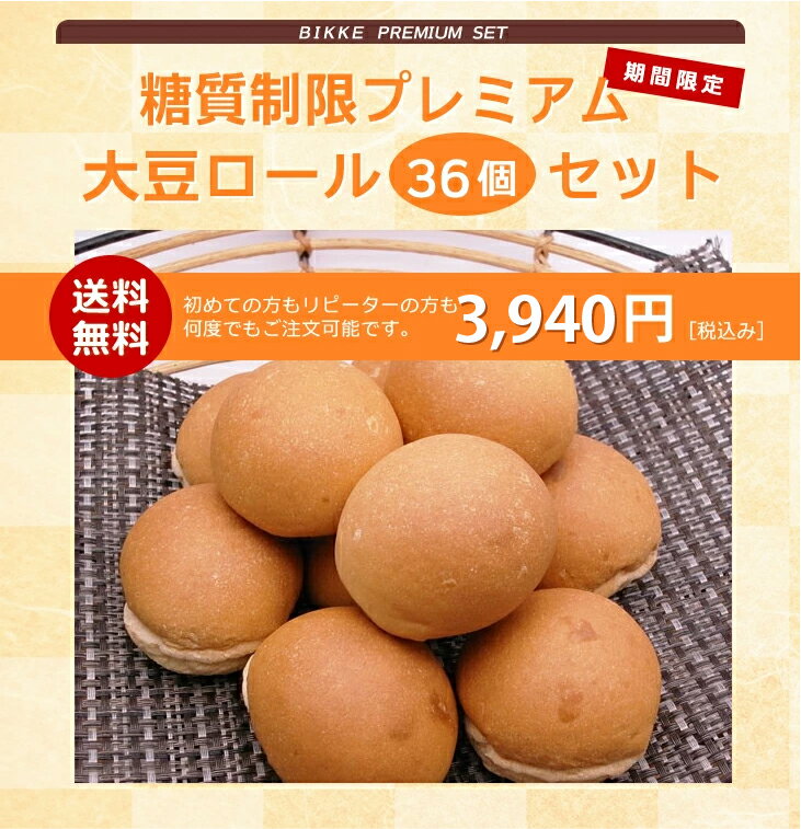 糖質制限 プレミアム大豆ロール (36個入り) 【 BIKKE 】 糖質 オフ 低糖質 ダイエット 食品 ロカボ パン 通販 カット GI値 低い 主食 置き換え 食事 ローカーボ 食べ物 お取り寄せ 満腹感 冷凍 腹持ち 減量 サポート 大豆 ソイ 工房