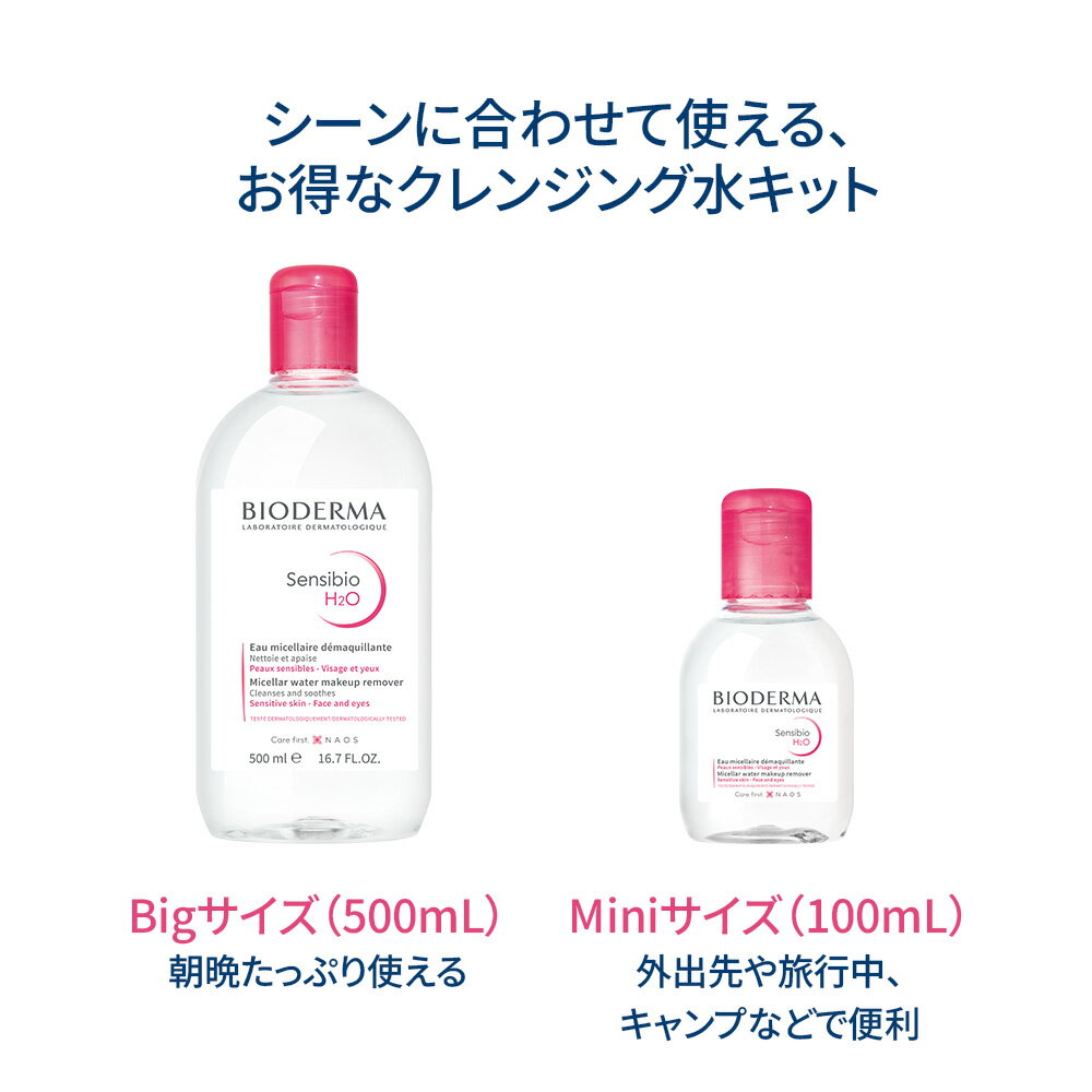【公式】ビオデルマ サンシビオ エイチツーオーD (H2O) ホーム&トラベルセット 500mL+100mL 敏感肌用 クレンジング水(拭き取り クレンジングウォーター メイク落とし 乾燥肌 無着色)