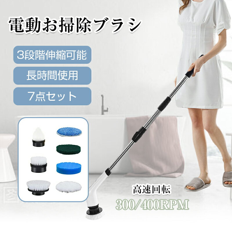 【セール半額×P10倍】電動掃除ブラシ 電動バスポリッシャー 高性能 充電式 コードレス 小型 防水仕様 キッチン掃除用 汚れを簡単に落とせる 軽量 コスパ 強力 電動ブラシ 90分持続使用 汎用 7種類の替えブラシ付 長さ伸縮調節可 手持ち 【PL保険加入済み製品・安心】