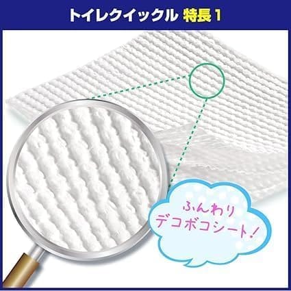 【爽やかな香り】ミントの香りが広がるトイレクイックルシートで、使用後もトイレが爽やかに保たれます。毎回の掃除が楽しくなり、清潔感あふれる空間を実現します。【強力な汚れ落とし】20カットのシートが、頑固な汚れやバクテリアをしっかりと取り除きます。これにより、トイレの衛生状態を簡単に維持でき、安心して使用できます。【経済的な詰替え用】ジャンボパックの詰替え用で、コストを抑えつつ長期間使用可能です。頻繁に買い替える手間が省け、環境にも優しい選択です。【簡単な使用方法】シートを取り出してサッと拭くだけで、手軽にトイレ掃除が完了します。忙しい日常でも、短時間で清潔なトイレを保つことができます。【高品質な素材】花王の高品質な素材を使用しており、肌に優しく、安心して使用できます。これにより、家族全員が快適にトイレを利用できる環境を提供します。 花王 トイレクイックル 詰替用 10枚入20カットは、ミントの香りが爽やかなトイレ用そうじシートです。厚手で丈夫なシートは、便器、便座、壁、床など、トイレ全体をしっかりと拭き上げ、汚れを簡単に除去できます。使用後は、そのままトイレに流せるため手軽に掃除ができます。専用の詰替容器に10枚収納でき、フタを閉めることでシートの乾燥を防ぎ、常に新鮮な状態で使用可能です。さらに、トイレットペーパーと同様の溶けやすさを持ち、浄化槽にも安心して使用できます。