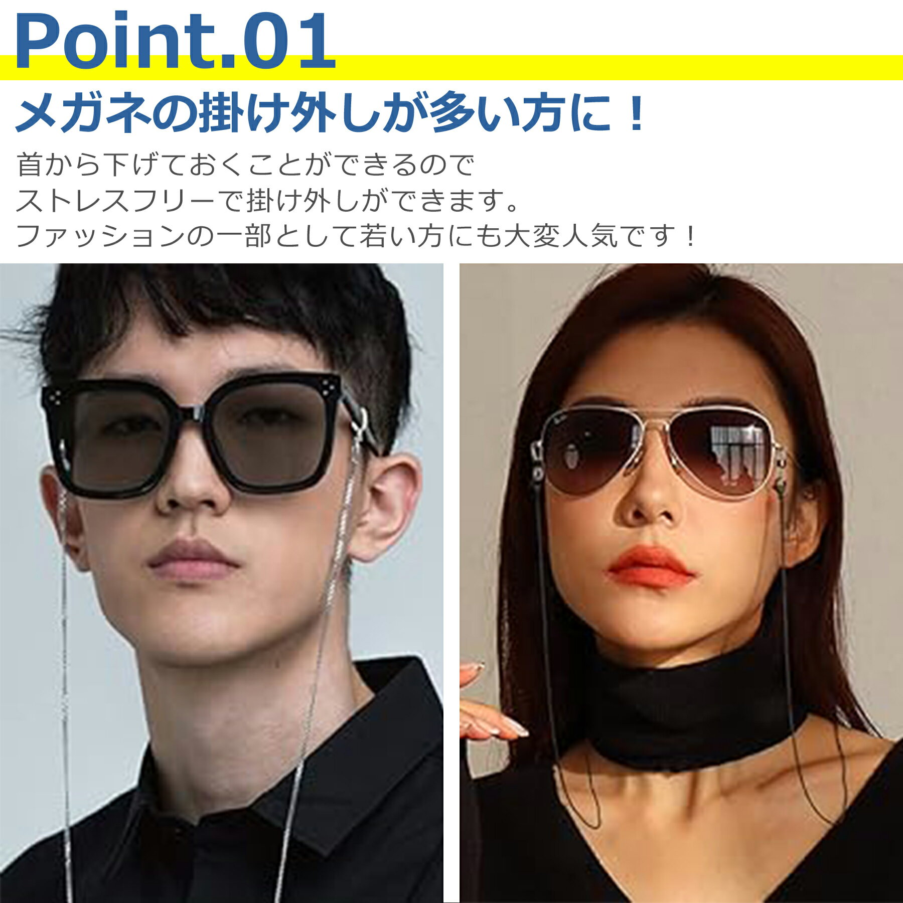 メガネストラップ チェーン ストラップ ホルダー グラスコード おしゃれ 落下防止 首掛け サングラス 眼鏡 ステンレス レディース メンズ 男性 女性 軽量 読書