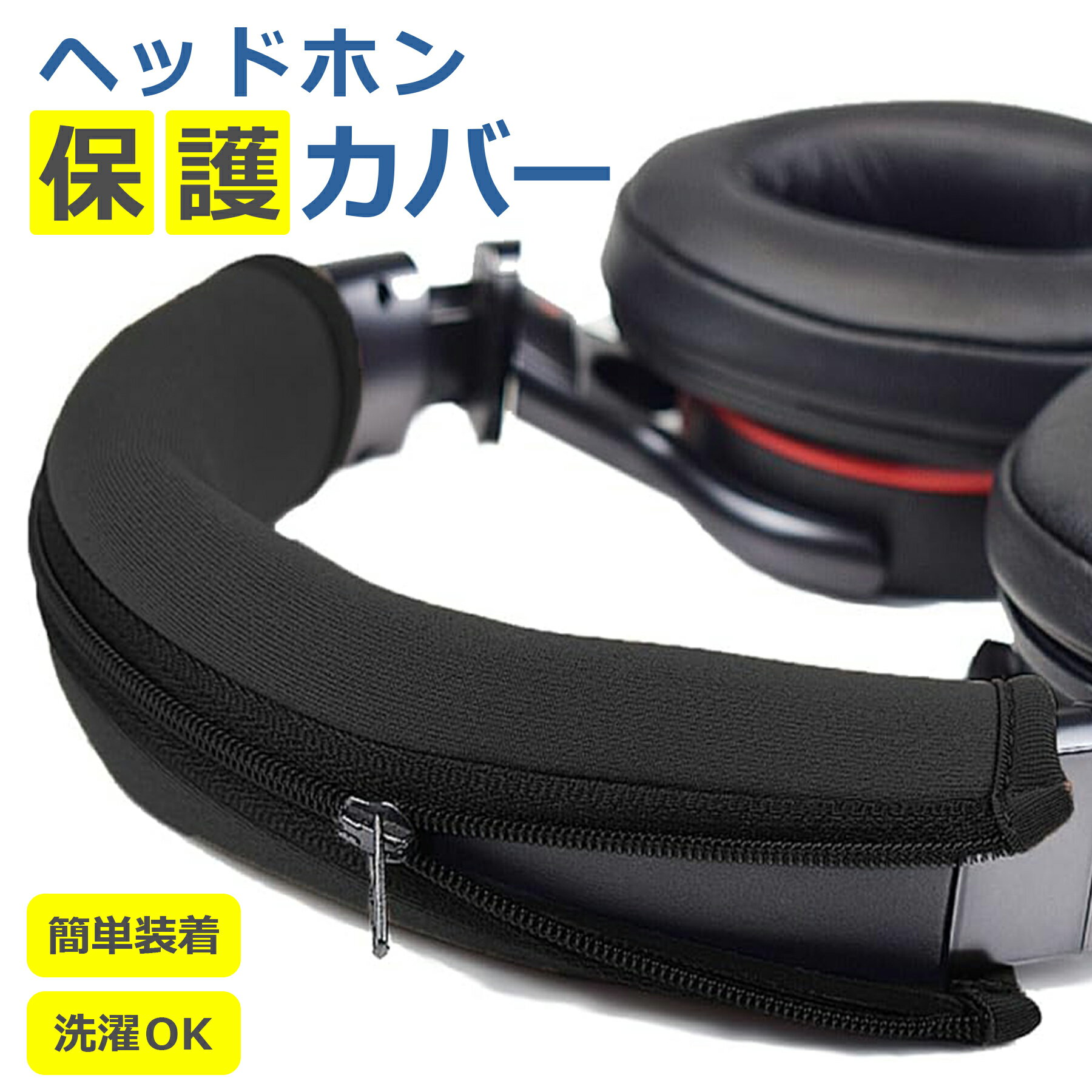 ヘッドホン カバー ジッパー式 伸縮性 保護 交換 互換性 汎用 キズ クッション ヘッドセット 劣化対策 長時間快適 簡単装着 水洗い可能