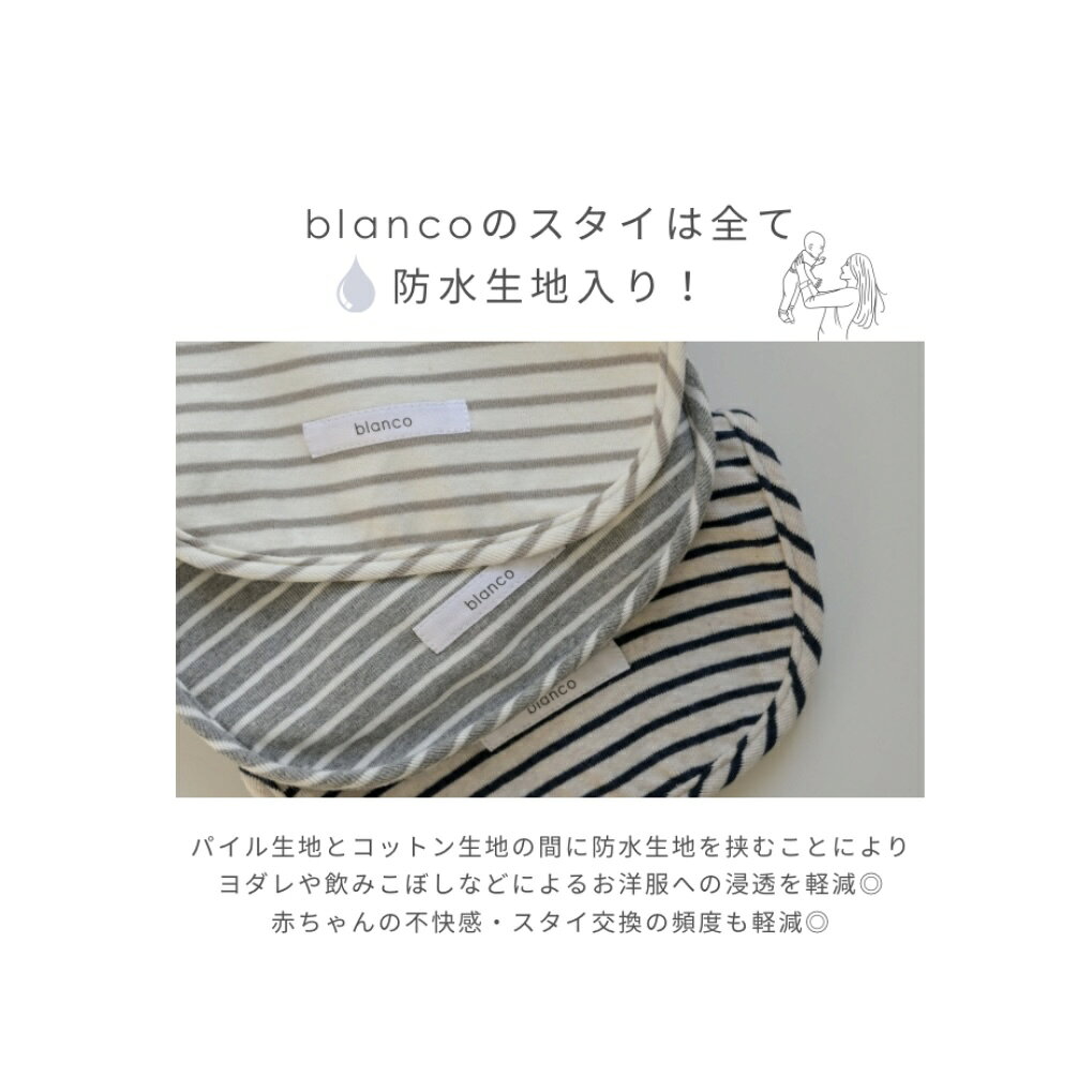 【ポイント2倍】【レビュー特典あり】防水生地入り ボーダー スタイ よだれかけ 赤ちゃん 3カラー ベビースタイ かわいい おしゃれ 海外子供服 シンプル 淡色 よだれカバー 春 夏 ネイビー グレー ベージュ blanco