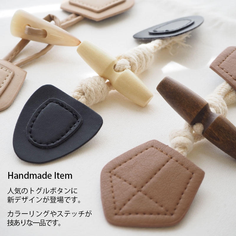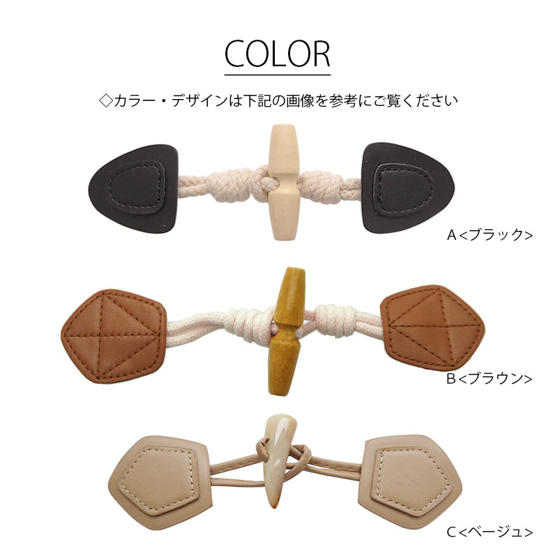 トグルボタン ウッドボタン パーツ セット ダッフルボタン フェイクレザー 45mm 50mm 60mm BLAZE ハンドメイド クラフト 手芸 手作り 商用利用可能 資材 素材 材料 アレンジ リメイク 付け替え シンプル おしゃれ ダッフルコート 木 ブラック ブラウン ベージュ