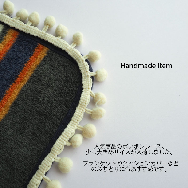 【100cmカット】2.5cm幅 ポンポン レース テープ ブレード ぼん天 ナチュラル BLAZE ハンドメイド クラフト 手芸 手作り 商用利用可能 リメイク アレンジ 貼り付け アクセサリーパーツ 資材 素材 装飾 部材 おしゃれ かわいい クッション ホワイト アイボリー 約2.5cm幅