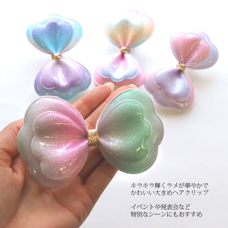 ヘアクリップ グラデーション W りぼん ぷっくりリボン キラキラ ハーフアップ 大きめ ヘアアクセサリー ヘアアクセ 髪留め 髪飾り まとめ髪 子供 キッズ 子ども かわいい おしゃれ 小学生 幼稚園 イベント おしゃれ ダンス 女の子 ピンク ブルー パープル 9/10発売