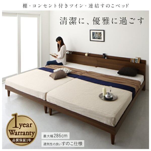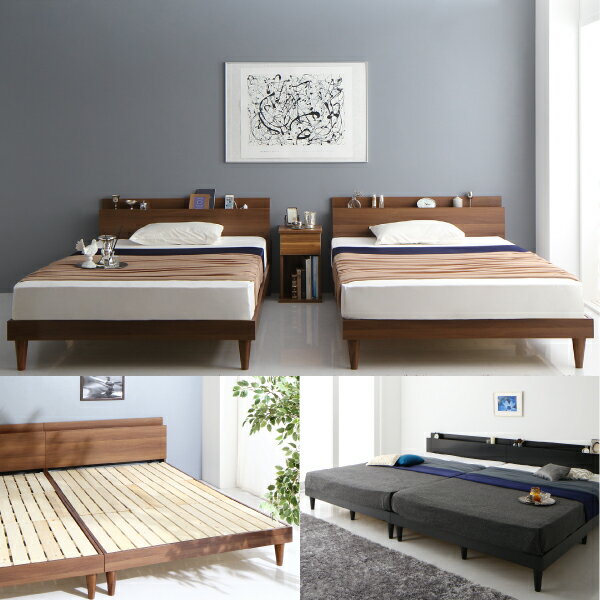 棚・コンセント付きツイン連結すのこベッド ベッドフレームのみ ワイドK220